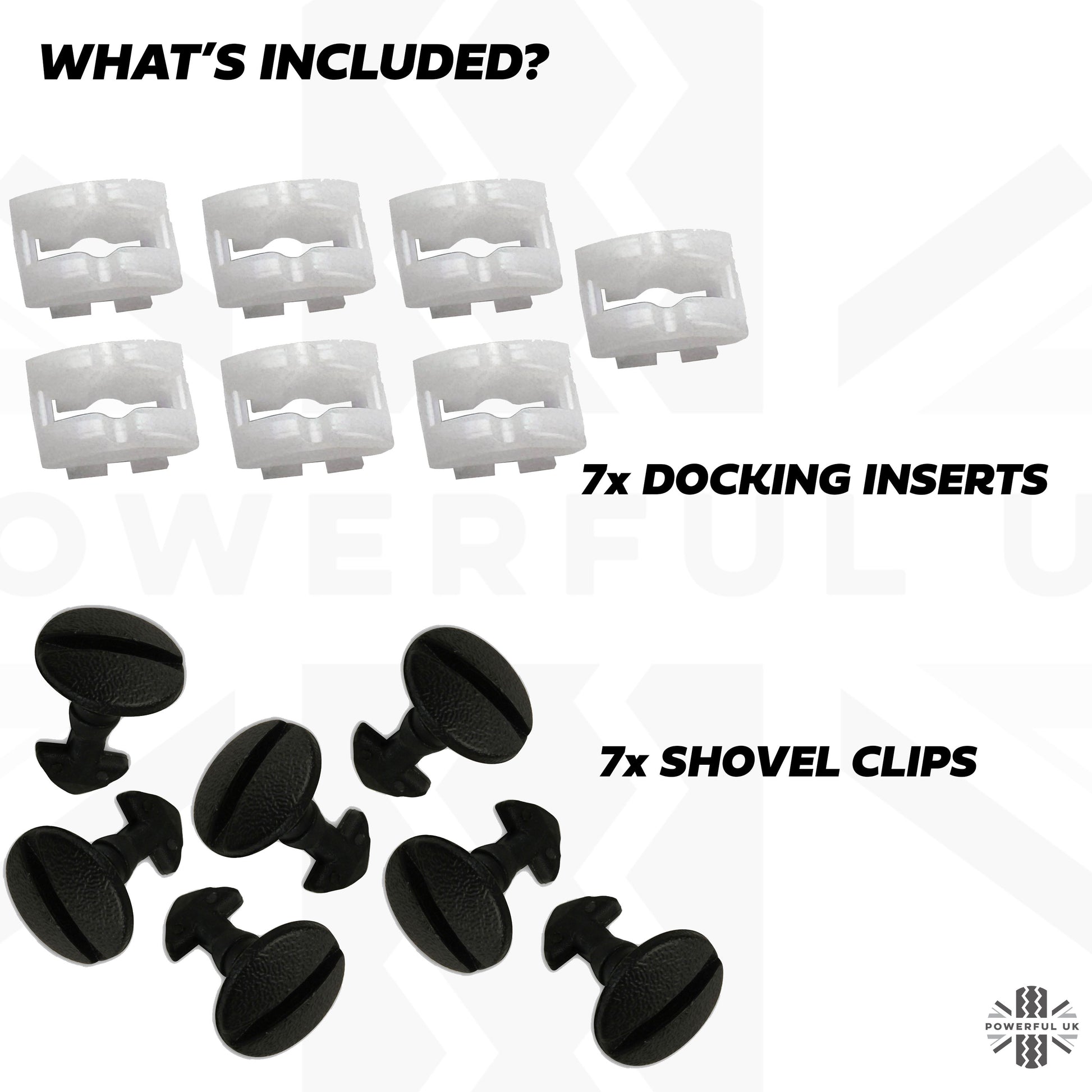 This is a set of 14 clips - 7x shovel fitting clips & 7x docking insert clips.
