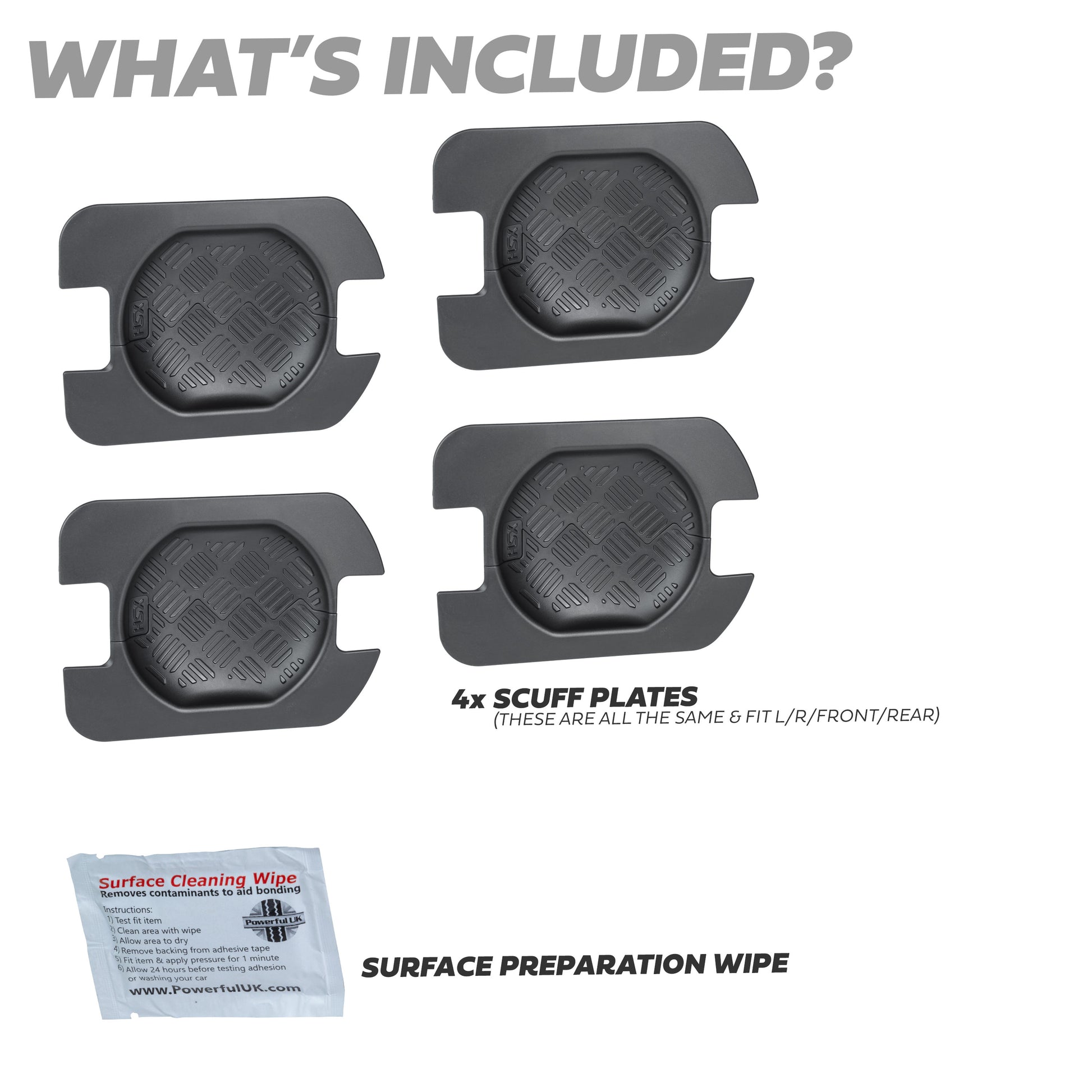 - 4x Door Scuff Plates (all identical and can be fitted front/left/front/rear)