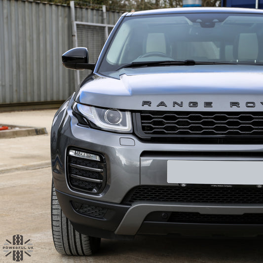 Black Front fog Surrounds wih Carbon Fibre Effect Inserts for Range Rover Evoque SE & HSE (2016-19)