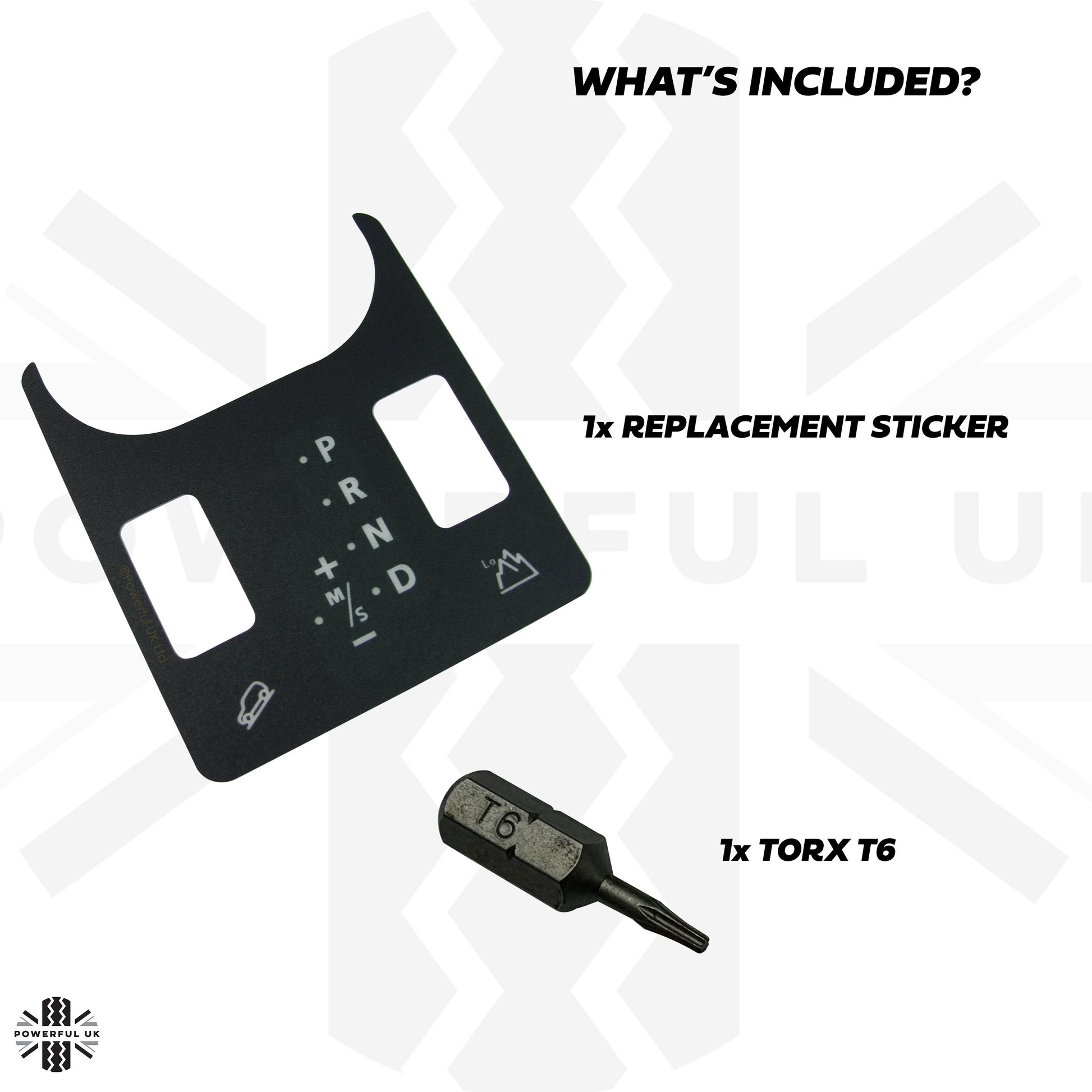 We have had a batch of these stickers made so that you can replace the worn / damaged sticker on your gear selector panel.