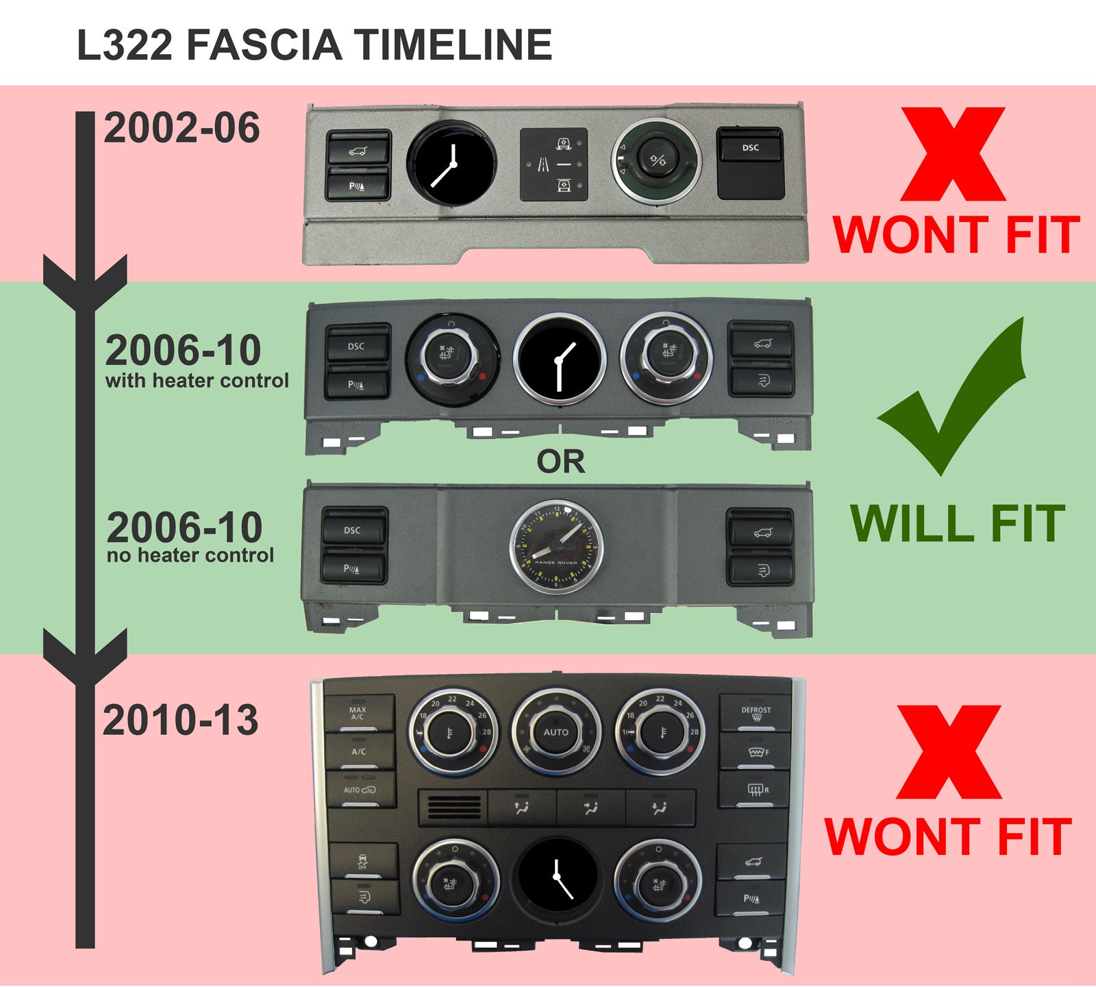 This item WILL fit the Range Rover L322 models from 2006 - 2010 (model with the hand brake switch)