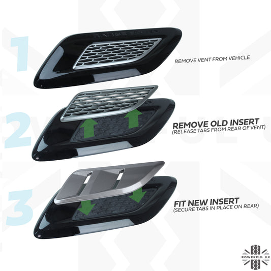 Bonnet Vents (2018) - Genuine - Gloss Black + Silver for Range Rover Sport