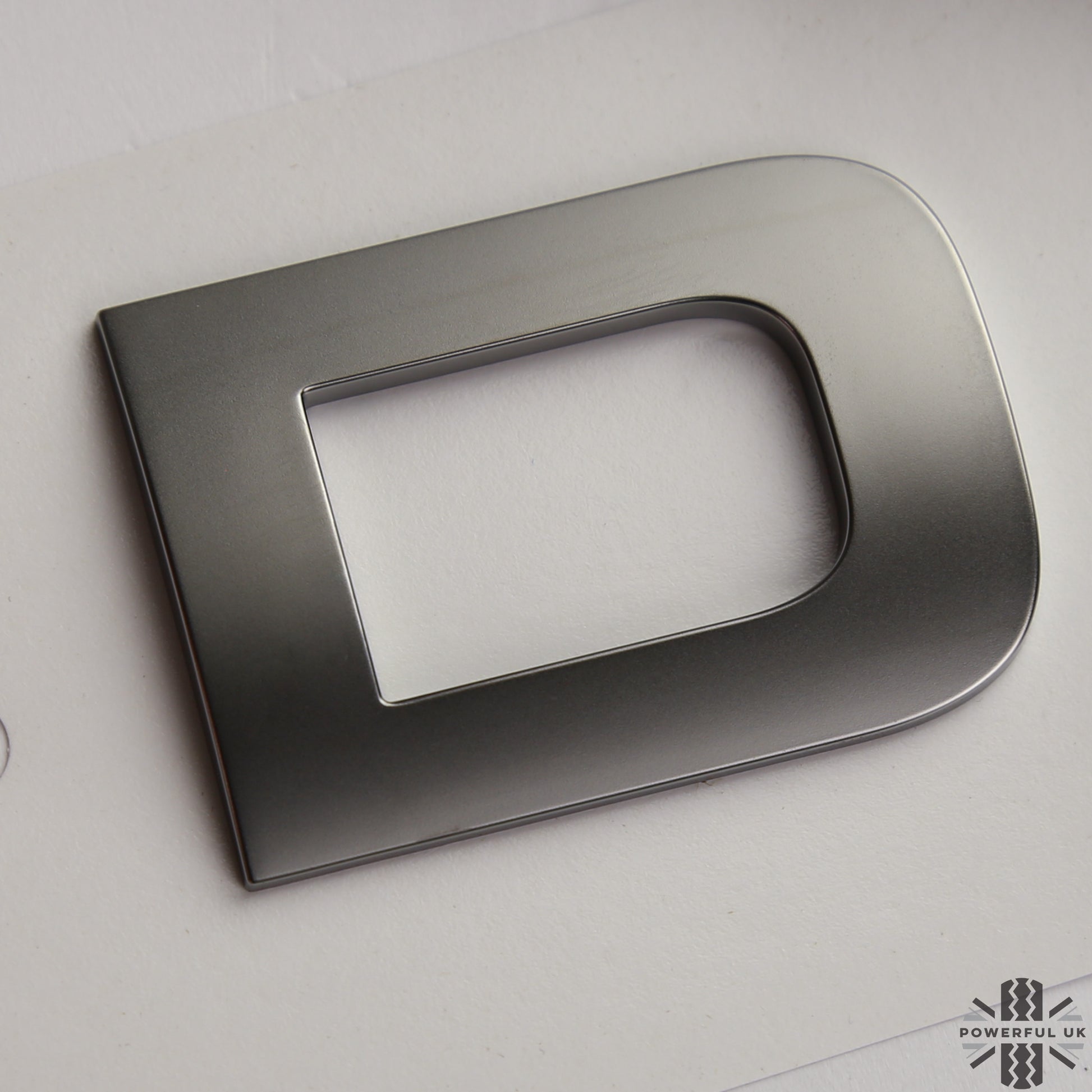 These letters are finished in Starlight Satin Chrome which has a warm tone.