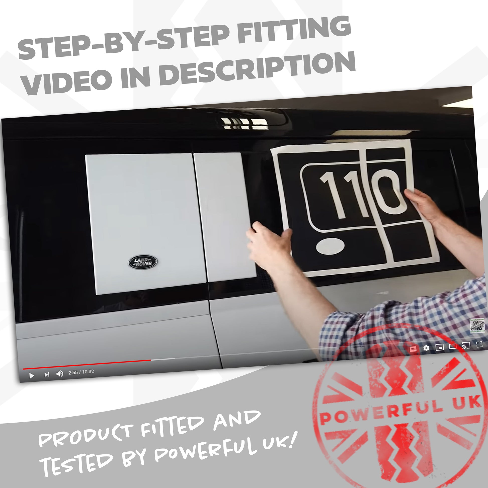We have made a video (see below) of us fitting similar decals to our Defender 110 - don't necessarily follow our application method as we've improved the application film!