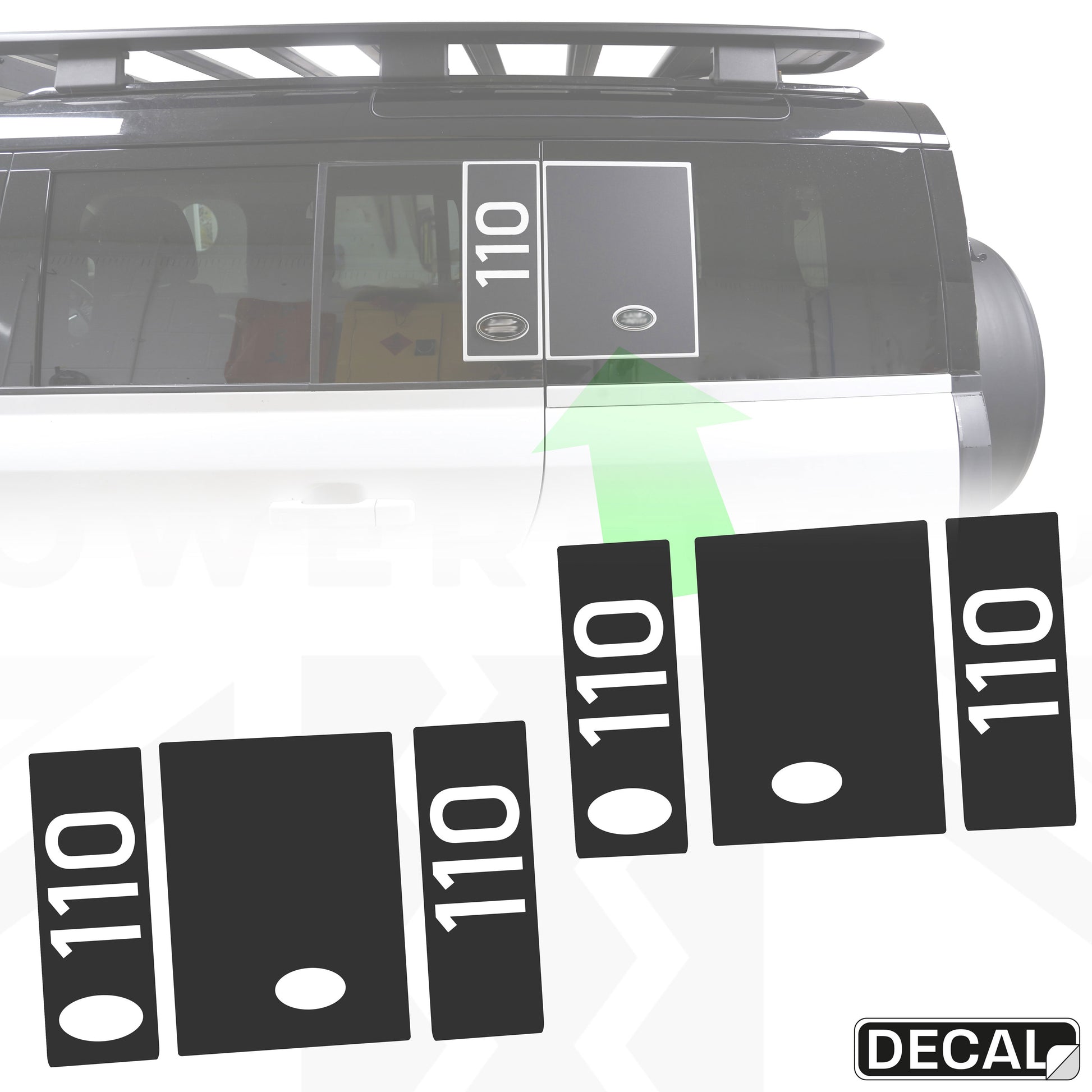 Side Panel Decal Kit - 'Vertical 110 & Badge Relocate' - Matte Black for Land Rover Defender L663