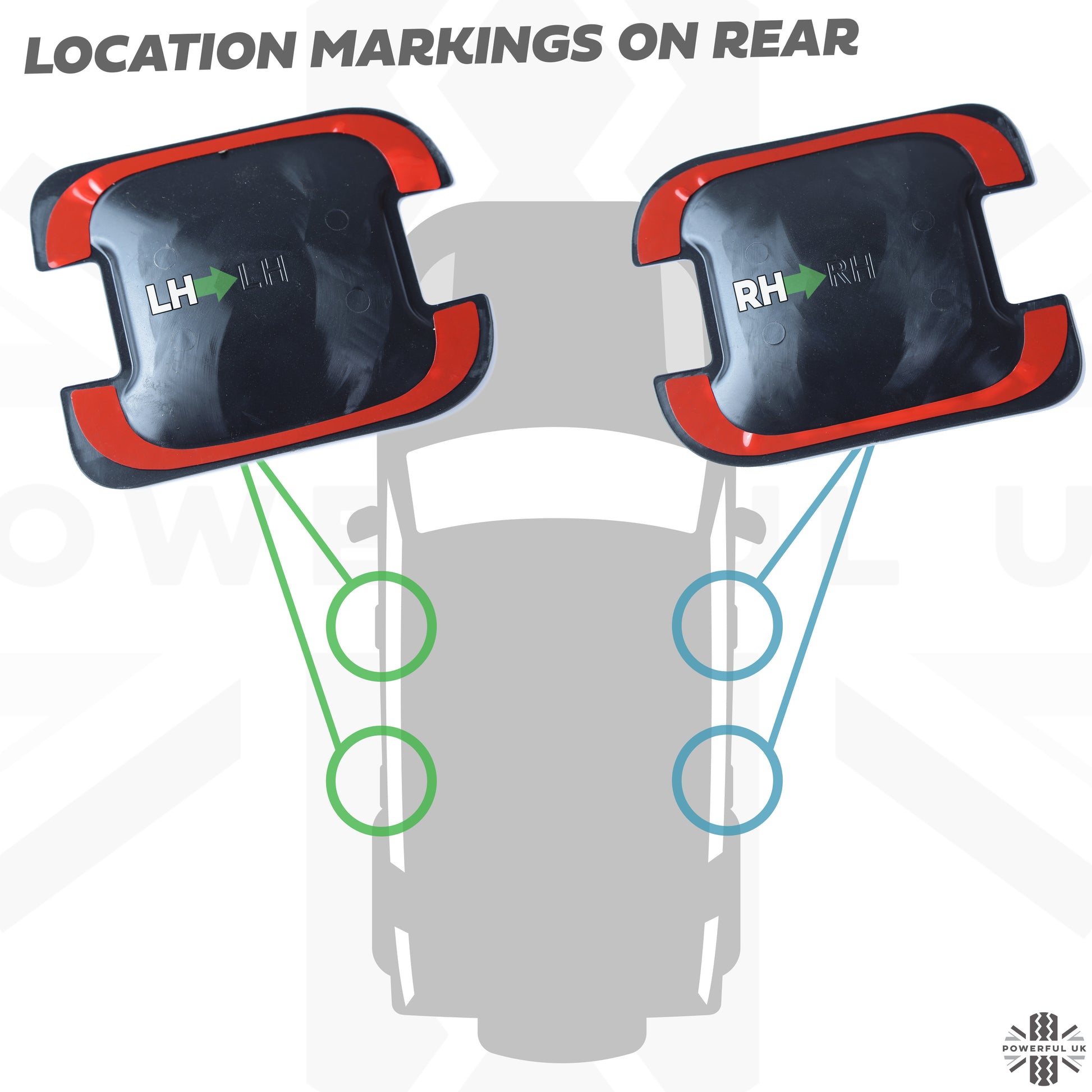 This listing is for a 5 piece set of door handle scuff plates for the Land Rover Defender L663 - 4 door model.