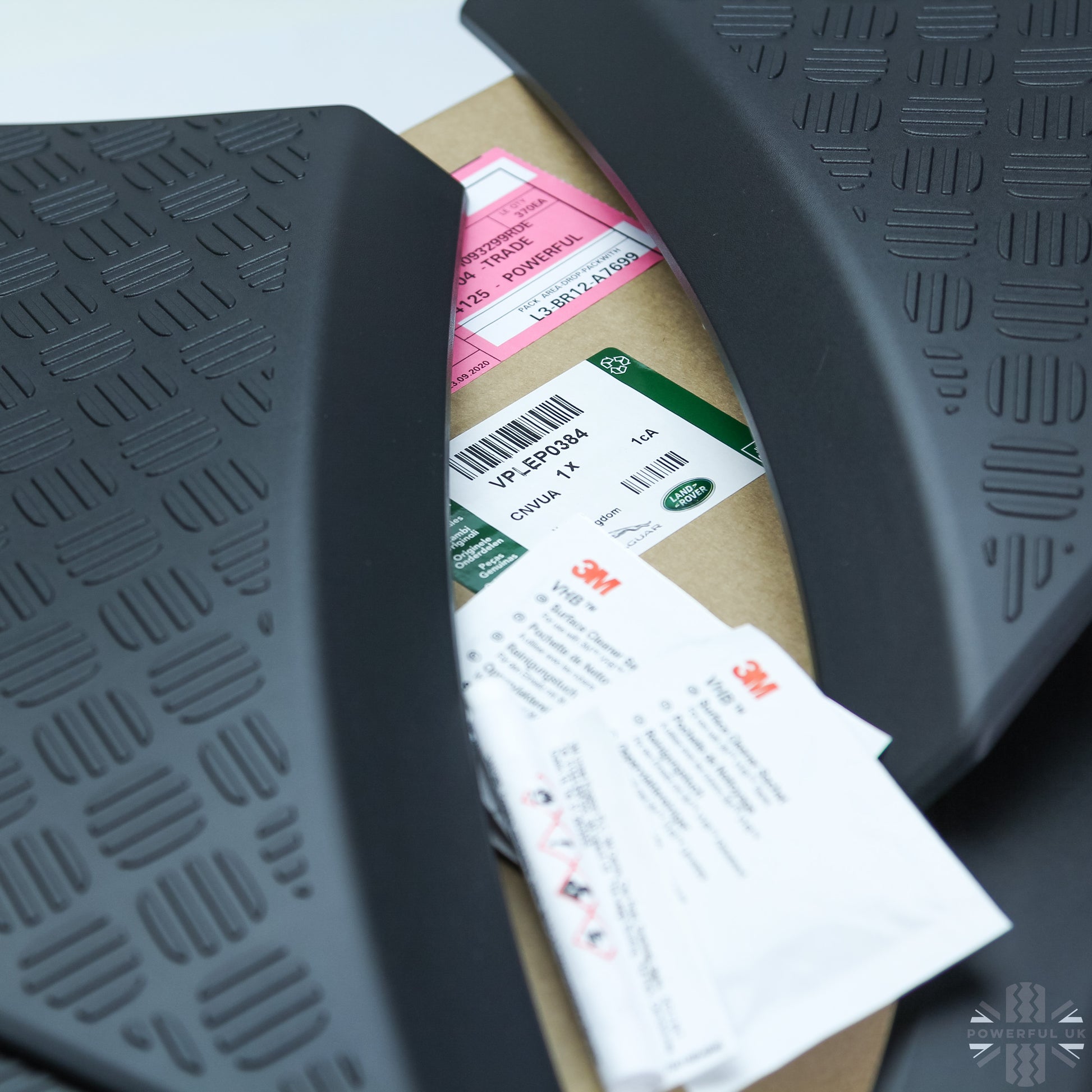 This listing is for a set of genuine Land Rover wheel arch chequer plate trims for the Land Rover Defender L663.