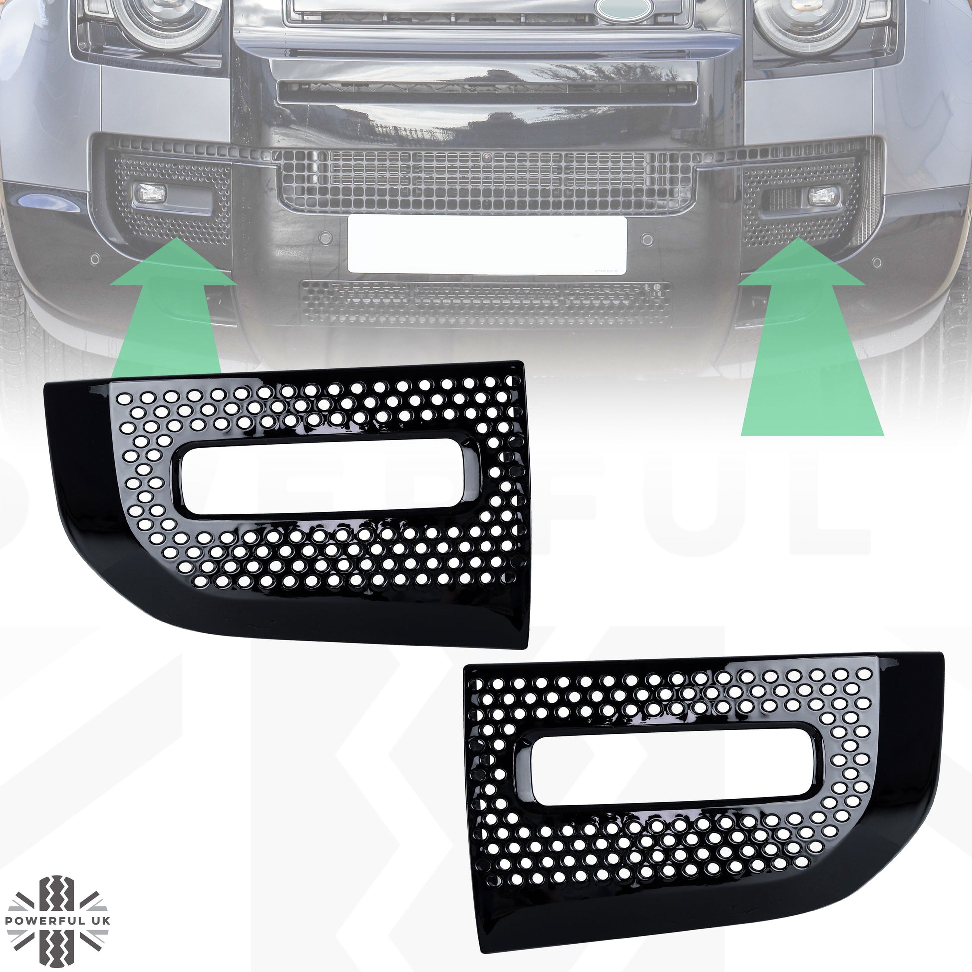 Fog Lamp Surround Grille for Land Rover Defender L663 - Gloss Black - PAIR