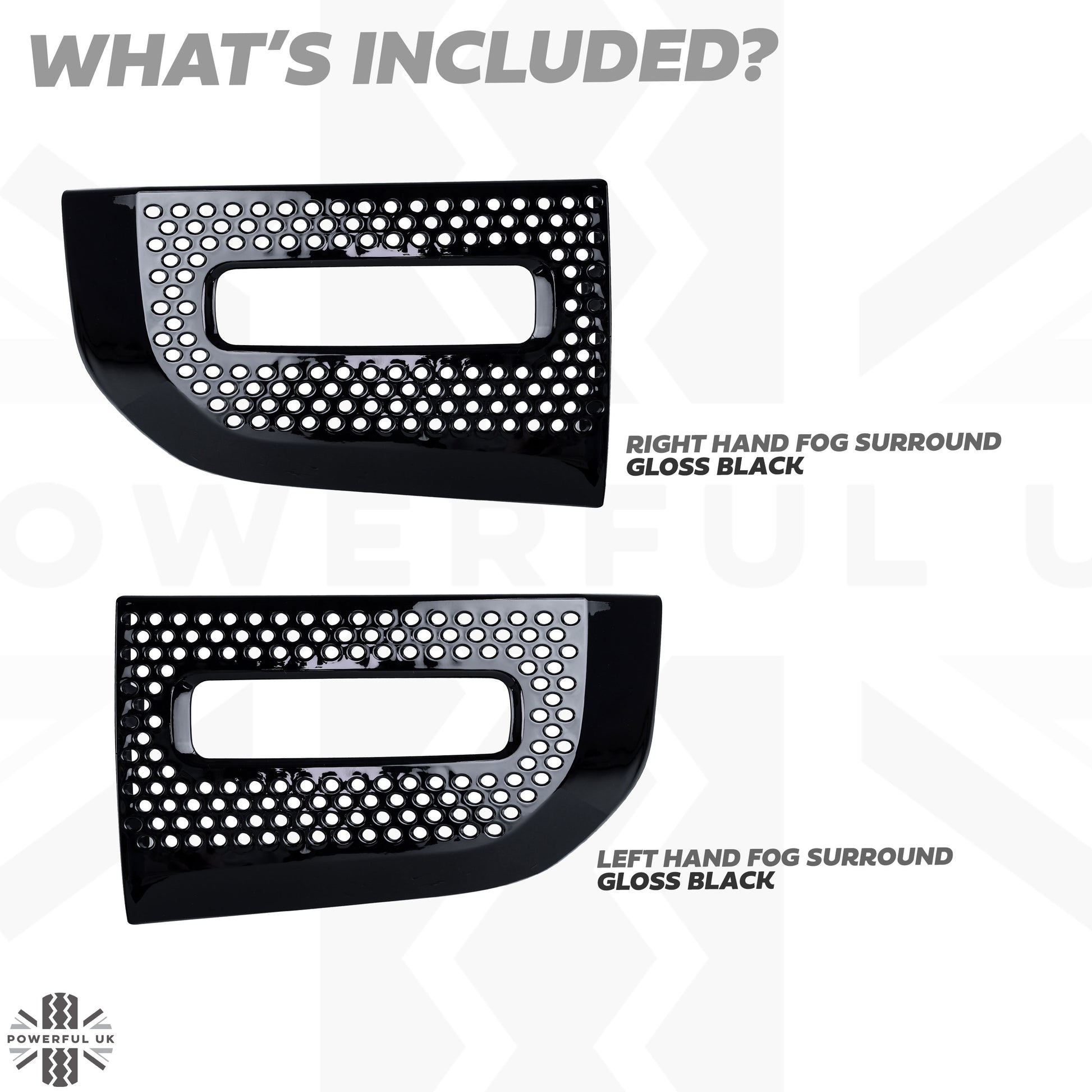 This is a pair of replacement fog lamp surround grilles for the Defender L663.