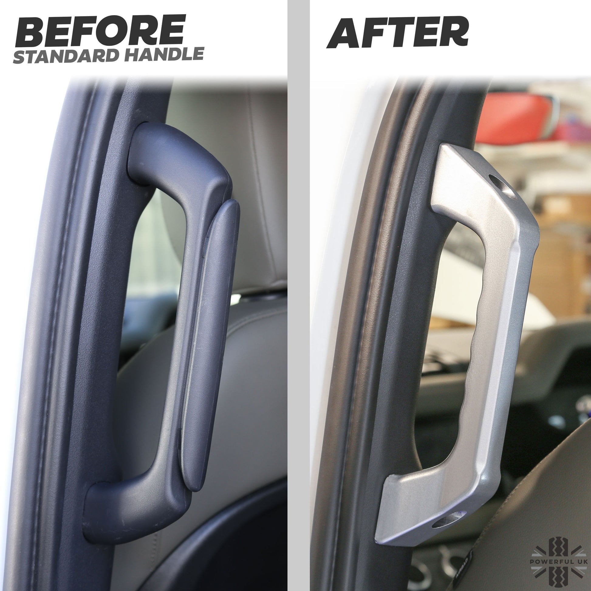 These handles replace the standard plastic handles on the B-pillars - the handles are to aid rear passenger entry/exit from the vehicle.