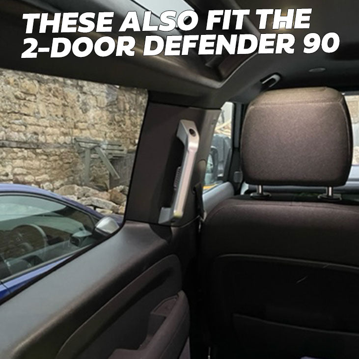 This is a pair of aluminium rear passenger grab handles for the Land Rover Defender L663.