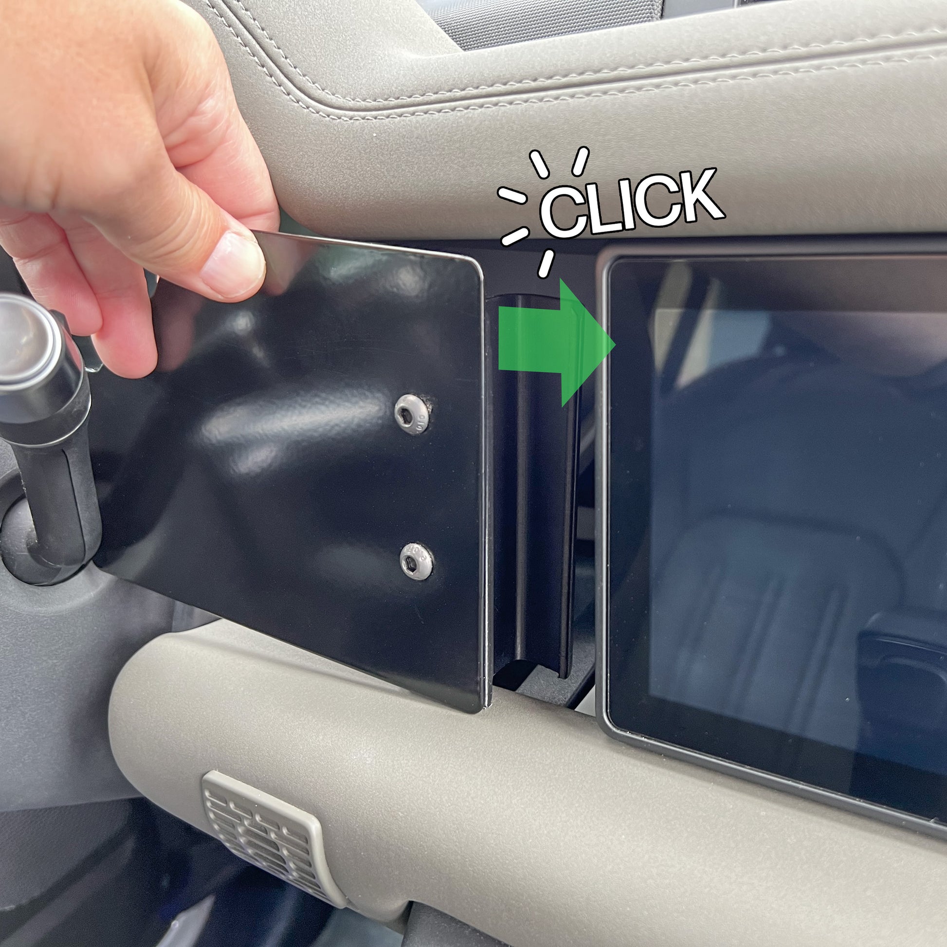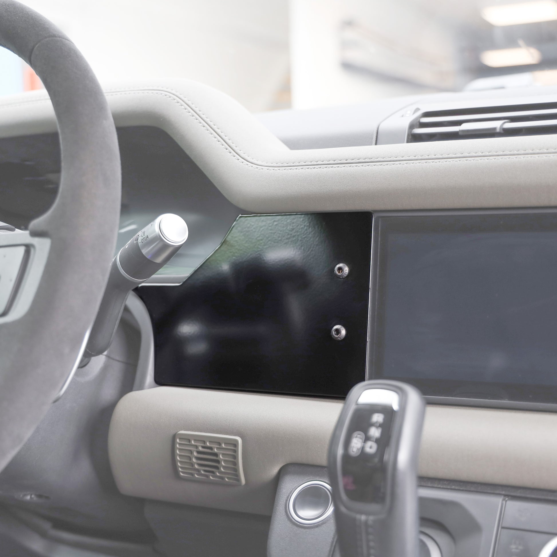 This is a UK designed auxiliary panel kit which mounts on the 10" Infotainment screen in the Land Rover Defender L663.