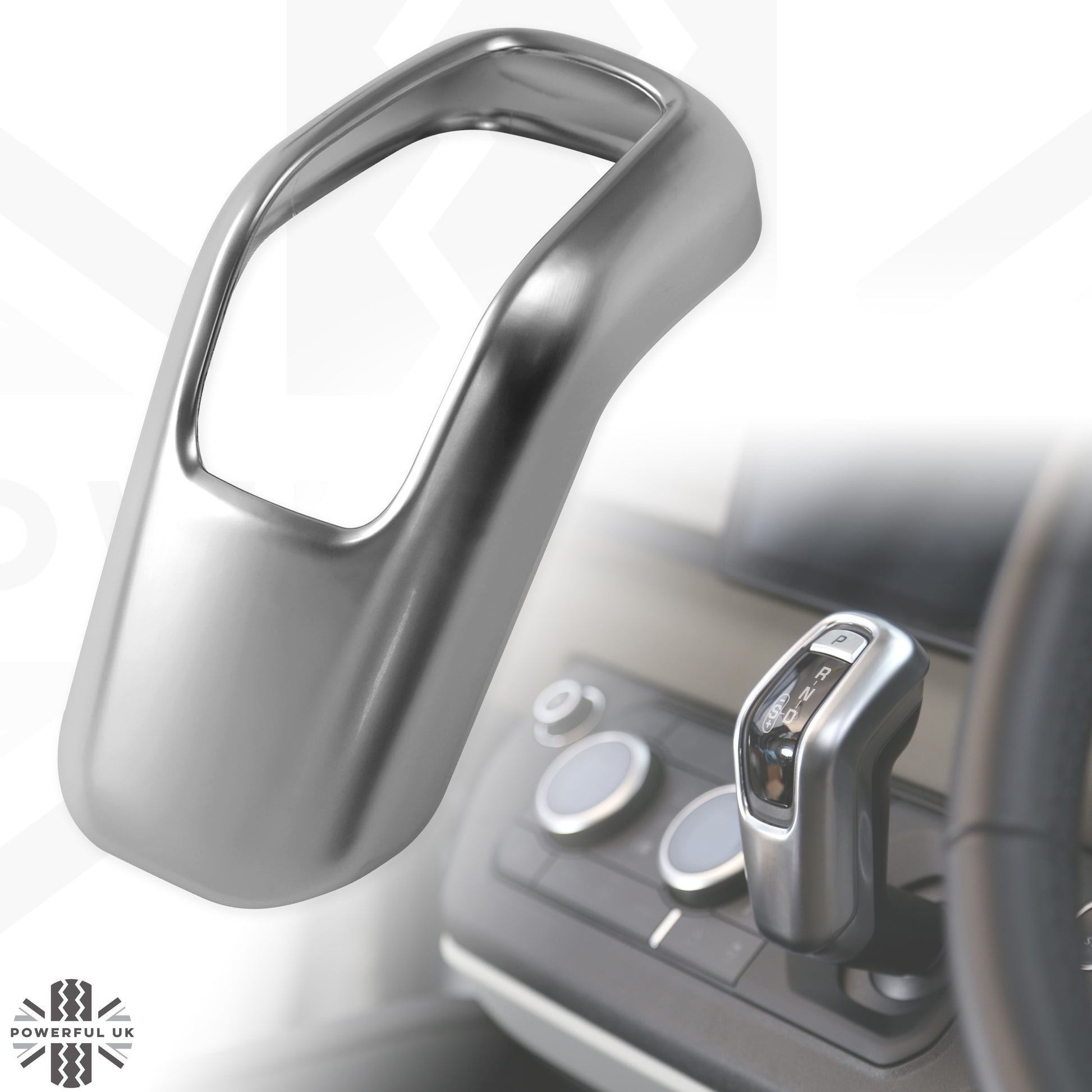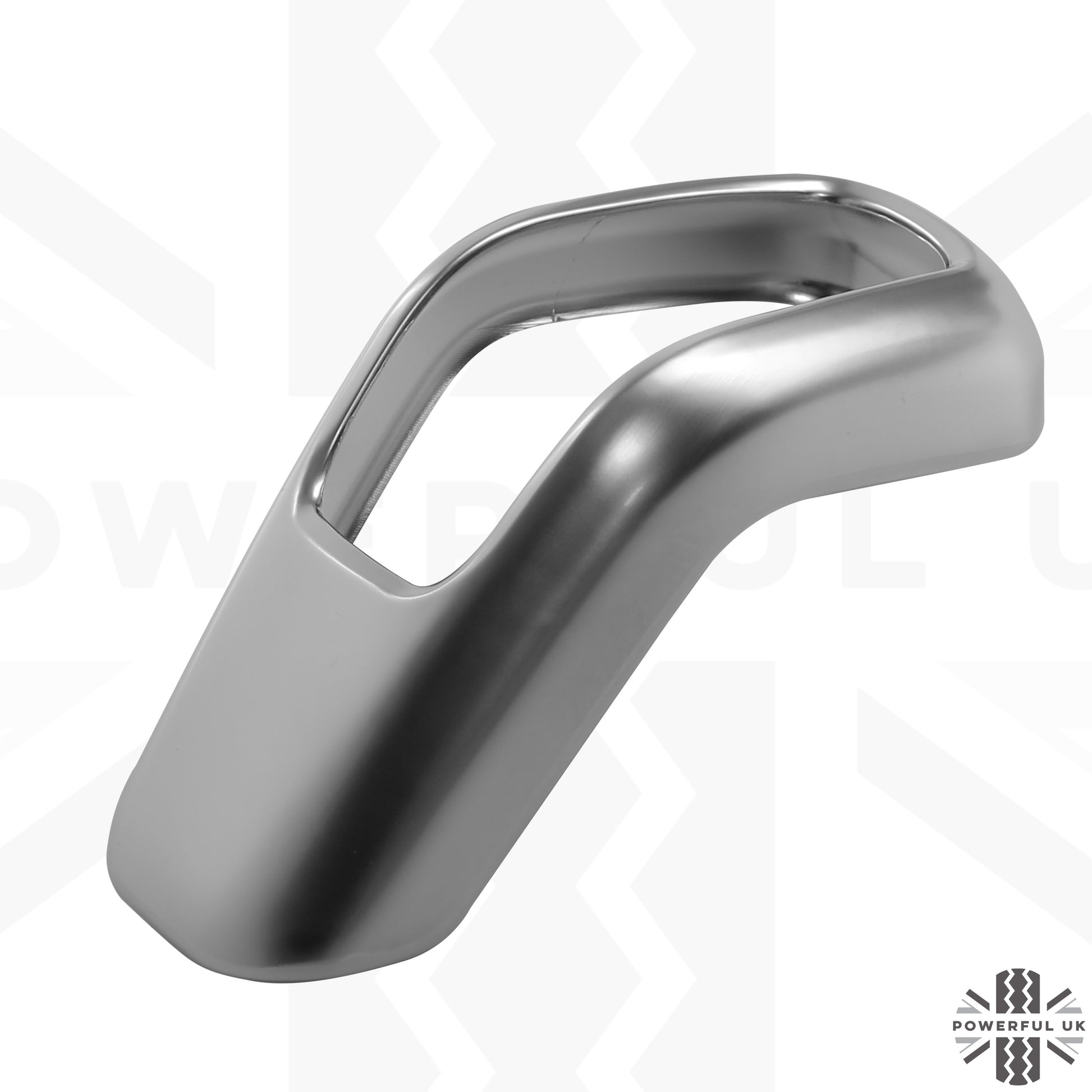This listing is for a silver/matt chrome gear selector lever trim cover for the Defender L663.