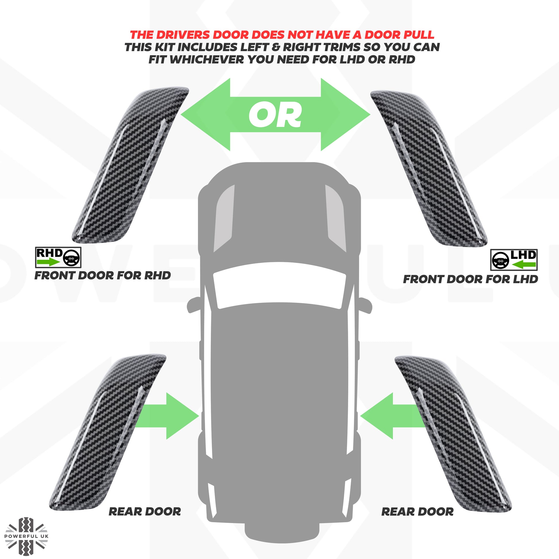 - 4x Door pull finishers (to fit both LHD & RHD vehicles) REPLACEMENT PARTS
