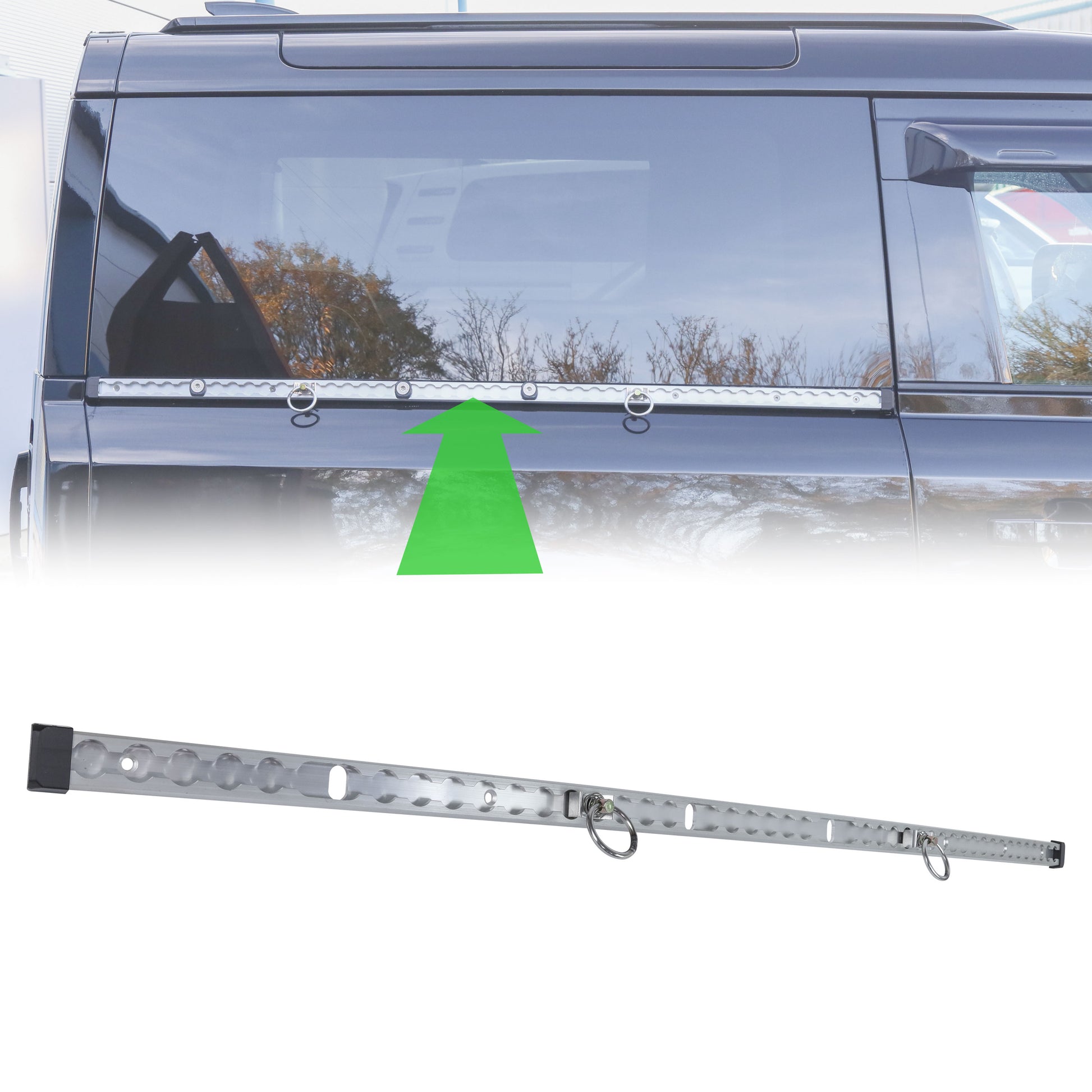 This aluminium rail replaces the trim strip beneath the rear window - you can keep your original trim strip safe and simply clip it back on at a later date if needed.