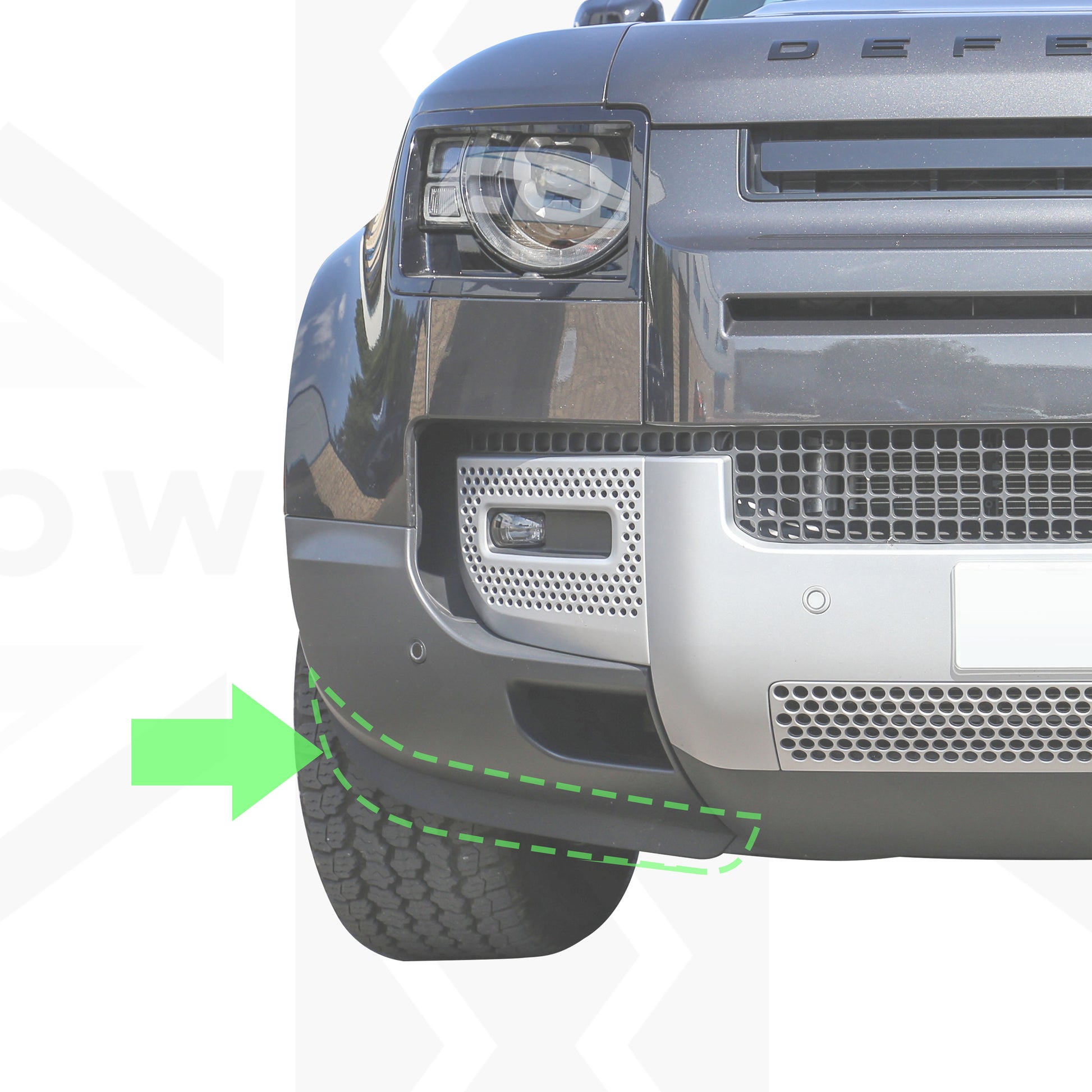 This is a replacement front bumper air deflector for the Defender L663.