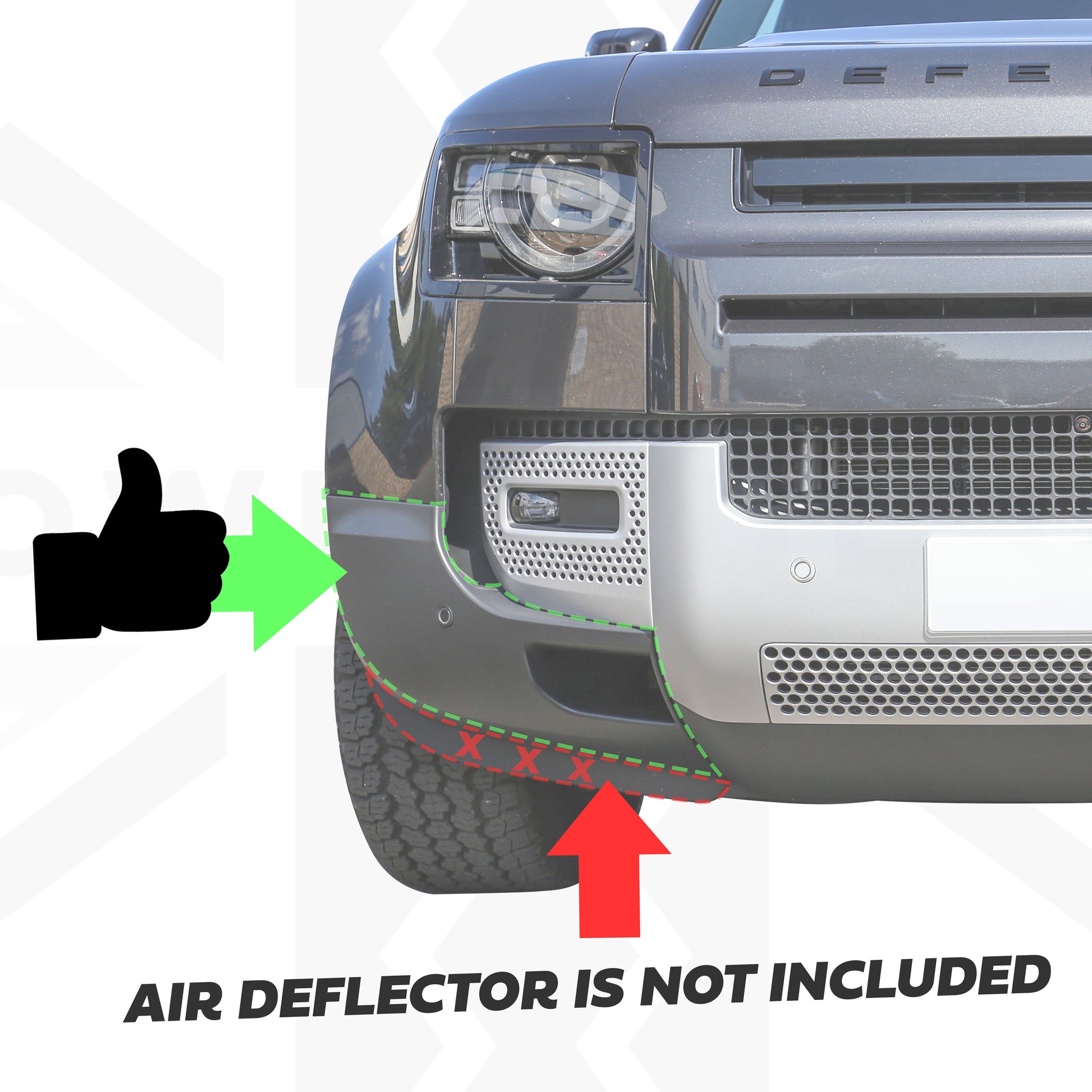 This is a replacement front bumper corner for the Defender L663.