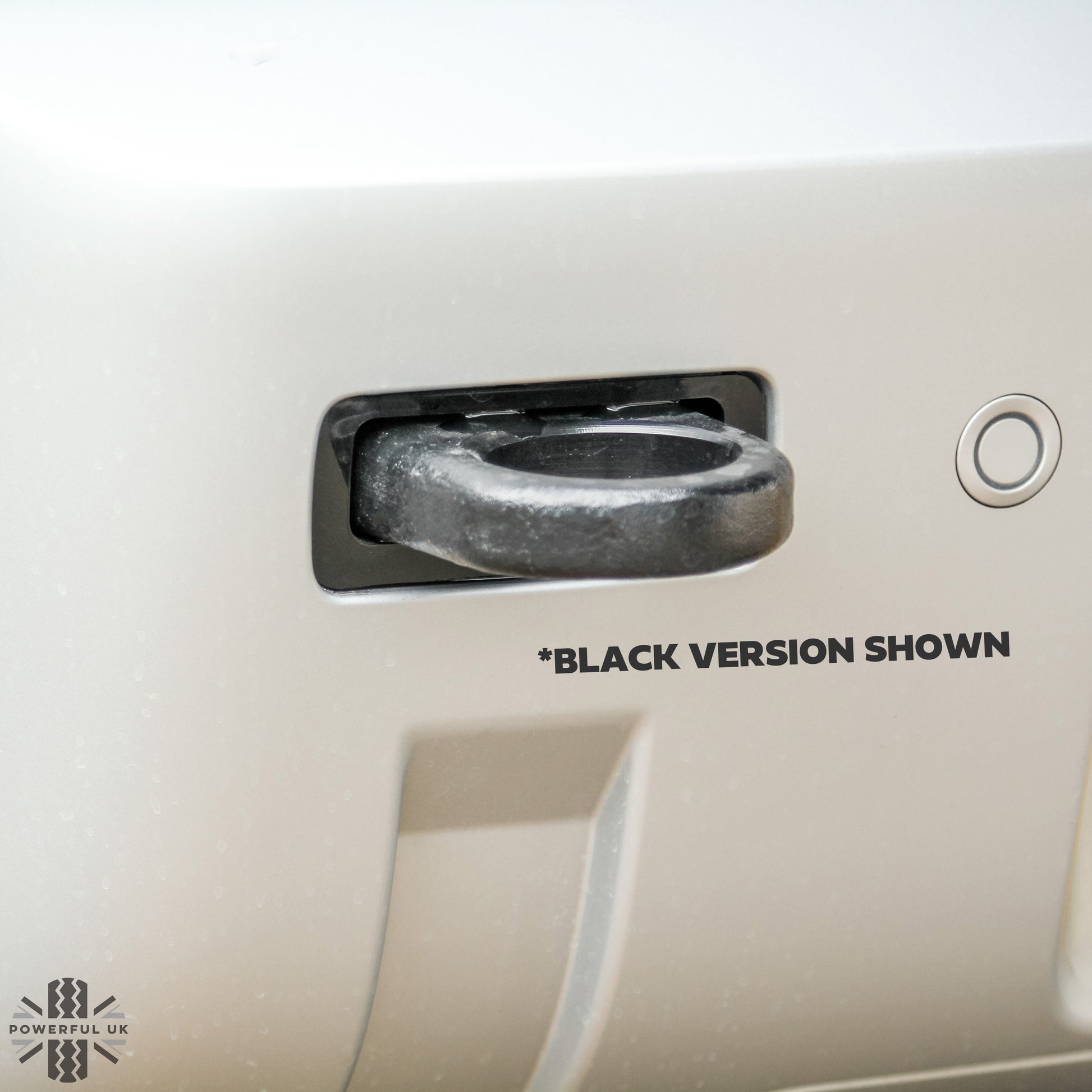 Note: Early models of the Defender X had the recess around the loops trimmed at factory so these will not fit (and nor do Land Rover's inserts) - however you could use our surface mount surrounds TOW735.