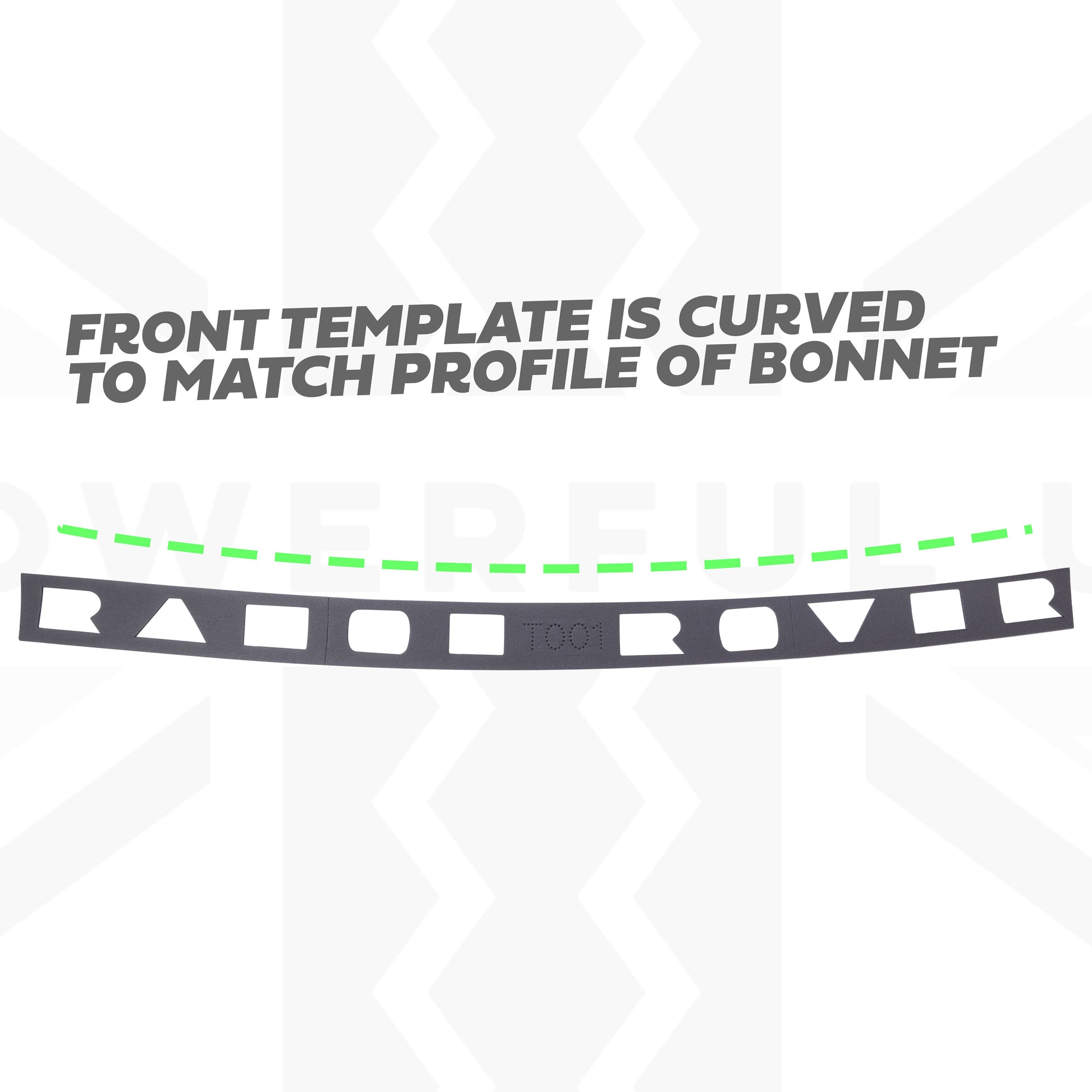 This template is curved to follow the shape of the bonnet - see our other listing to purchase the template for the rear lettering (different shape).