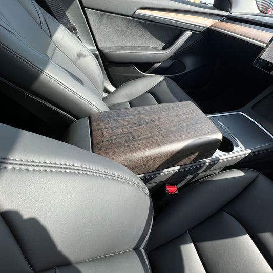Centre Armrest Cover in Dark Oak Wood for Tesla Model 3 & Y