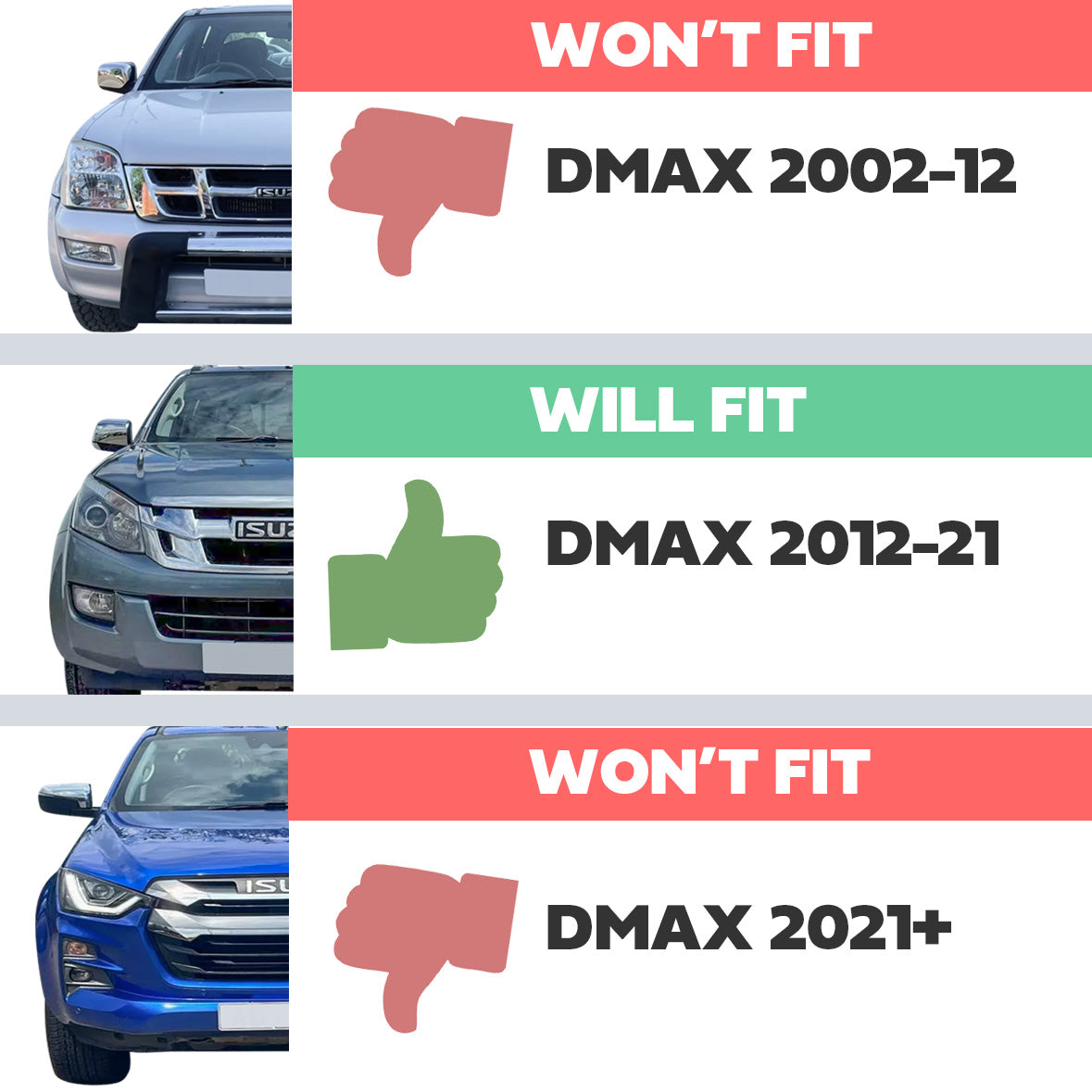 This item WILL fit all 2012 -2021 Isuzu DMax pickup trucks