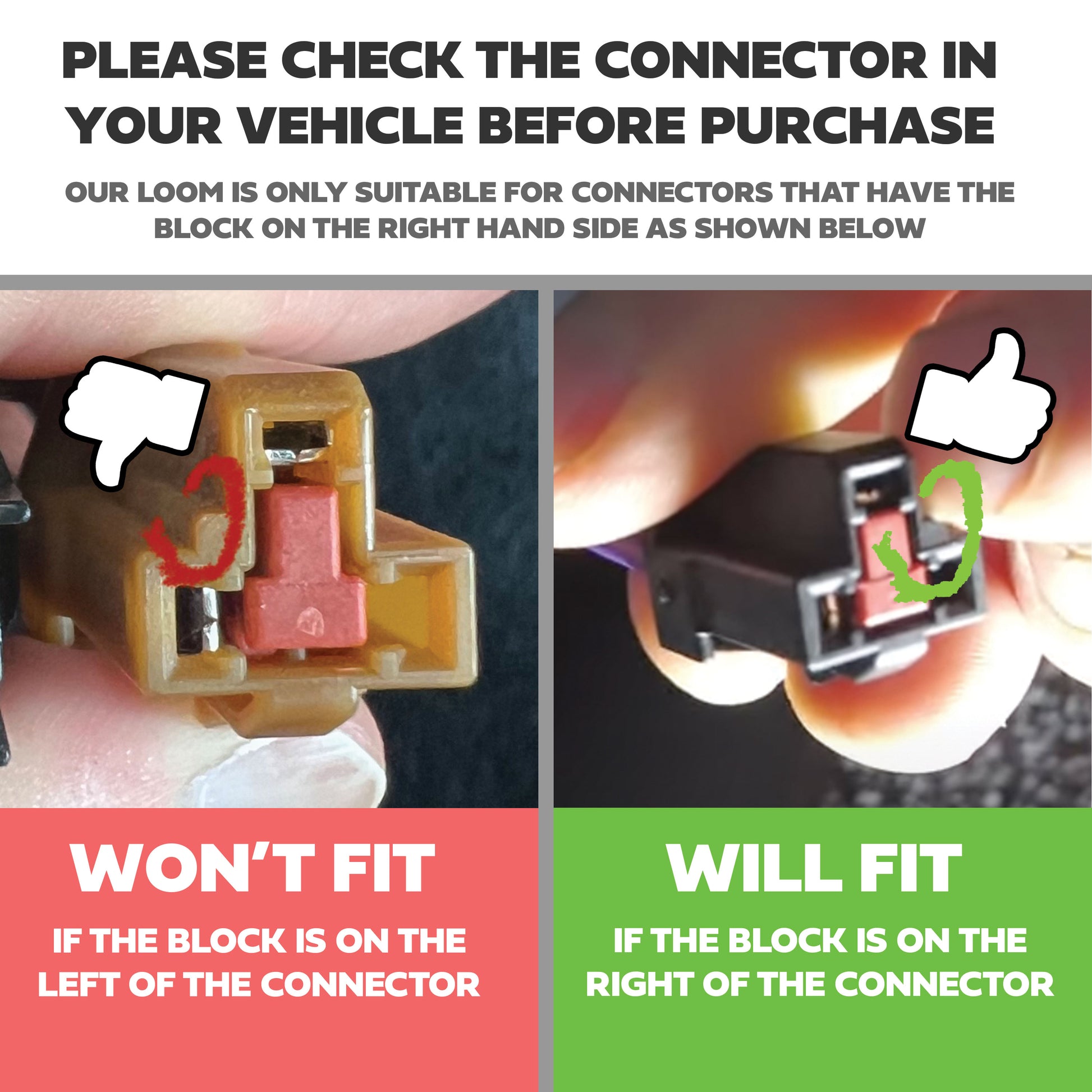 Note: Please ensure the connector in your vehicle has the block on the right hand side (this loom will not fit if the block is on the left) - see photos.