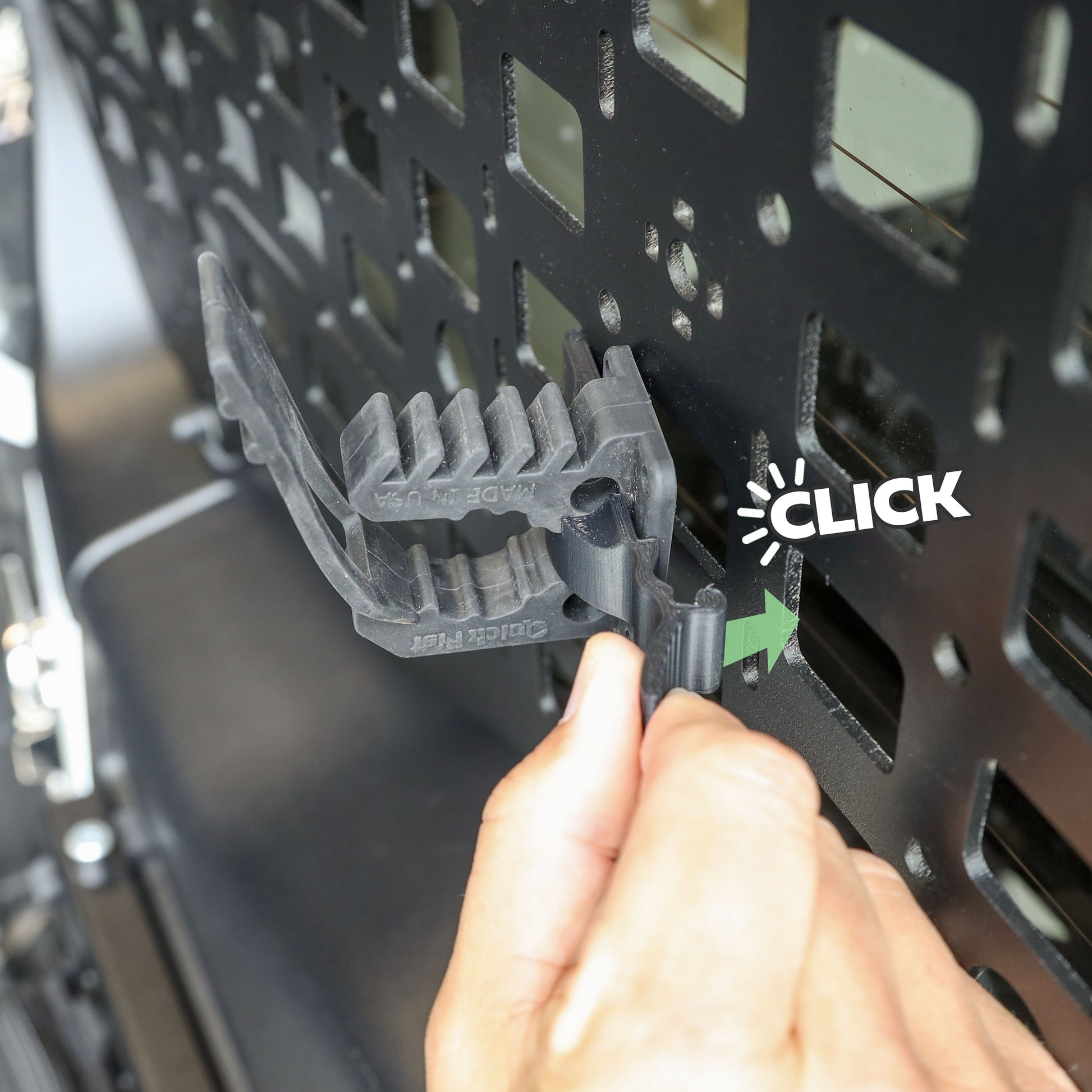 We have designed the custom clips so that you can easily mount the QuickFist Mini clamps to our range of molle plate accessories.