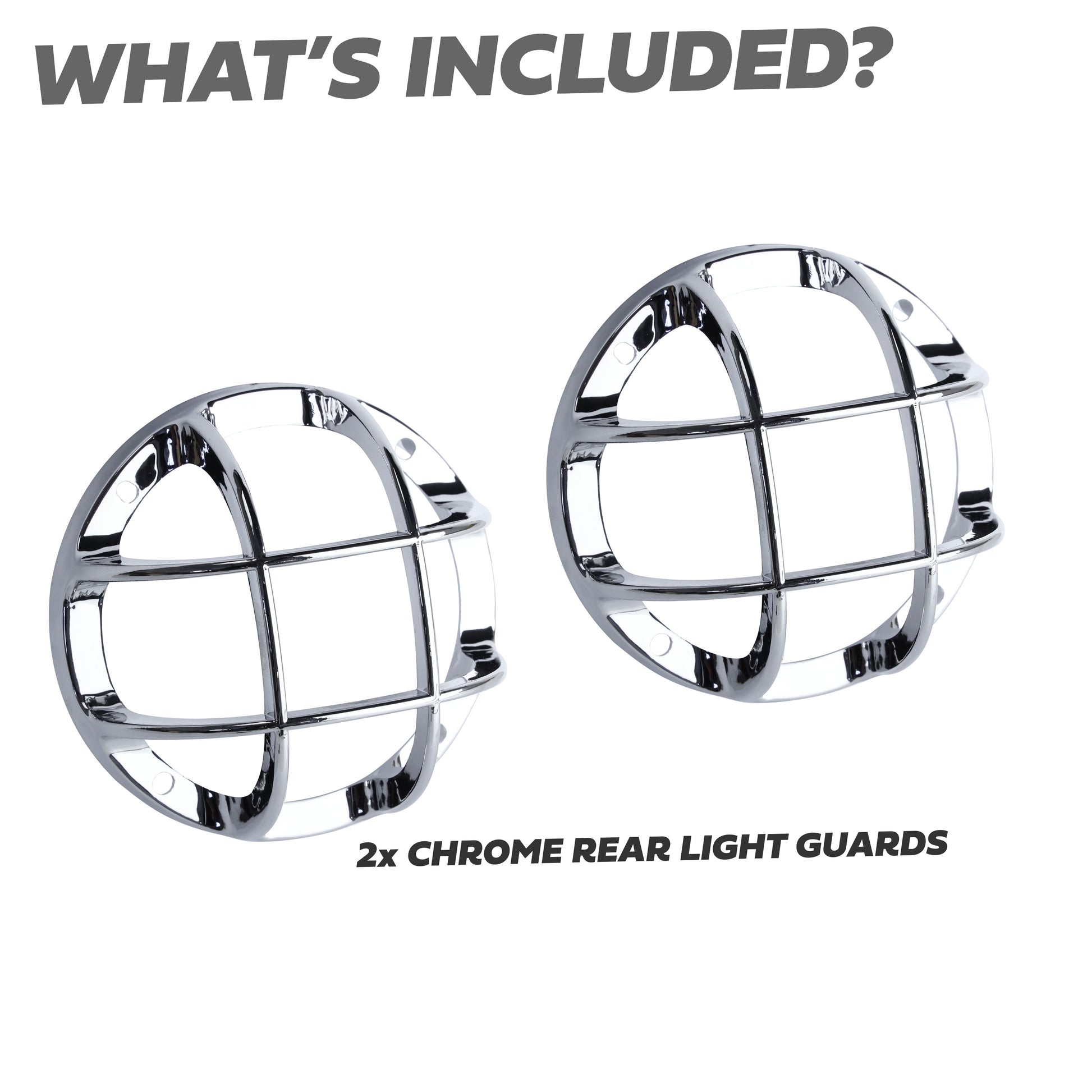 2x Rear Light Guards in Chrome for Land Rover Classic Defender