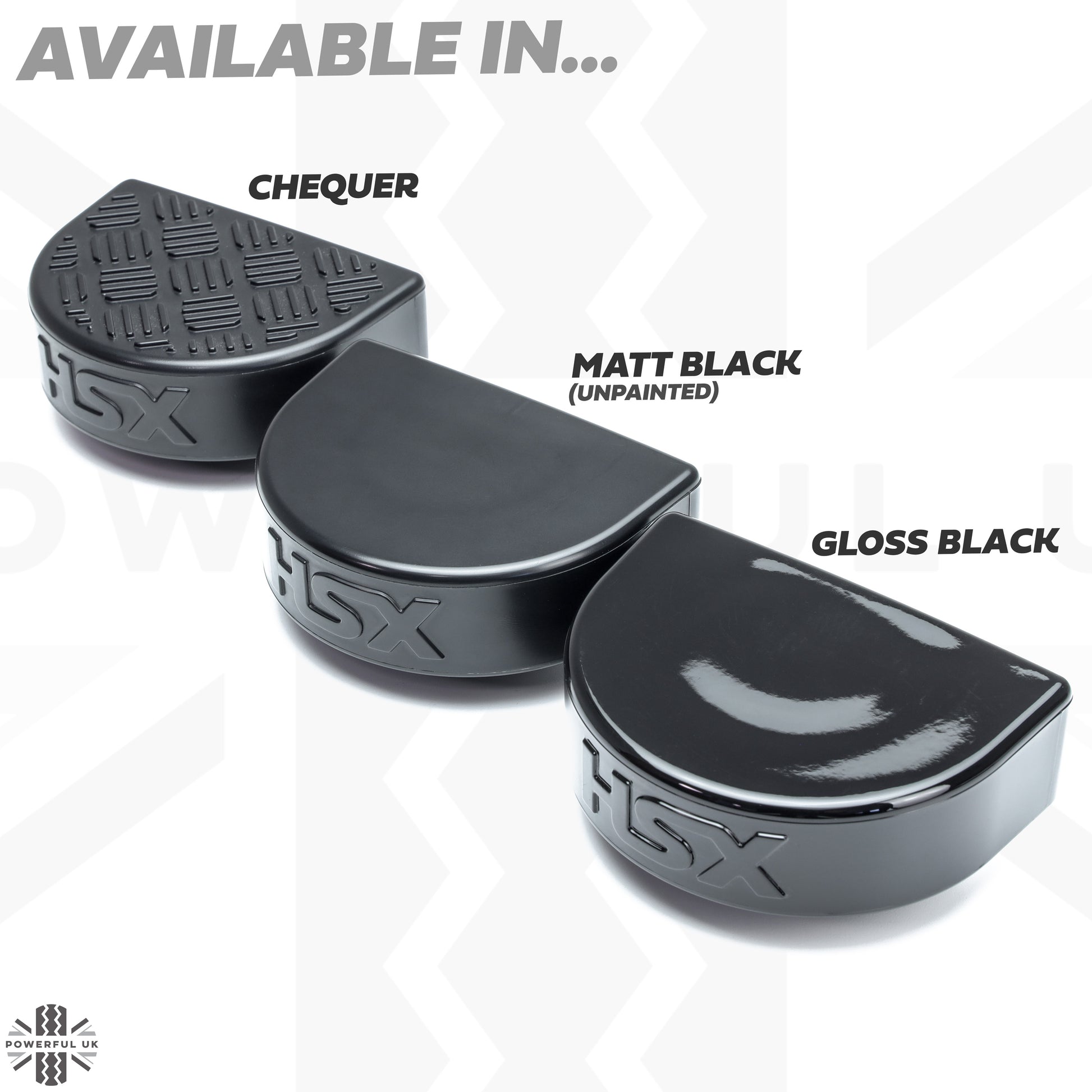 These bungs are available in 3 finish options: Smooth Top Matt Black, Smooth Top Gloss Black & Chequer Plate Top.