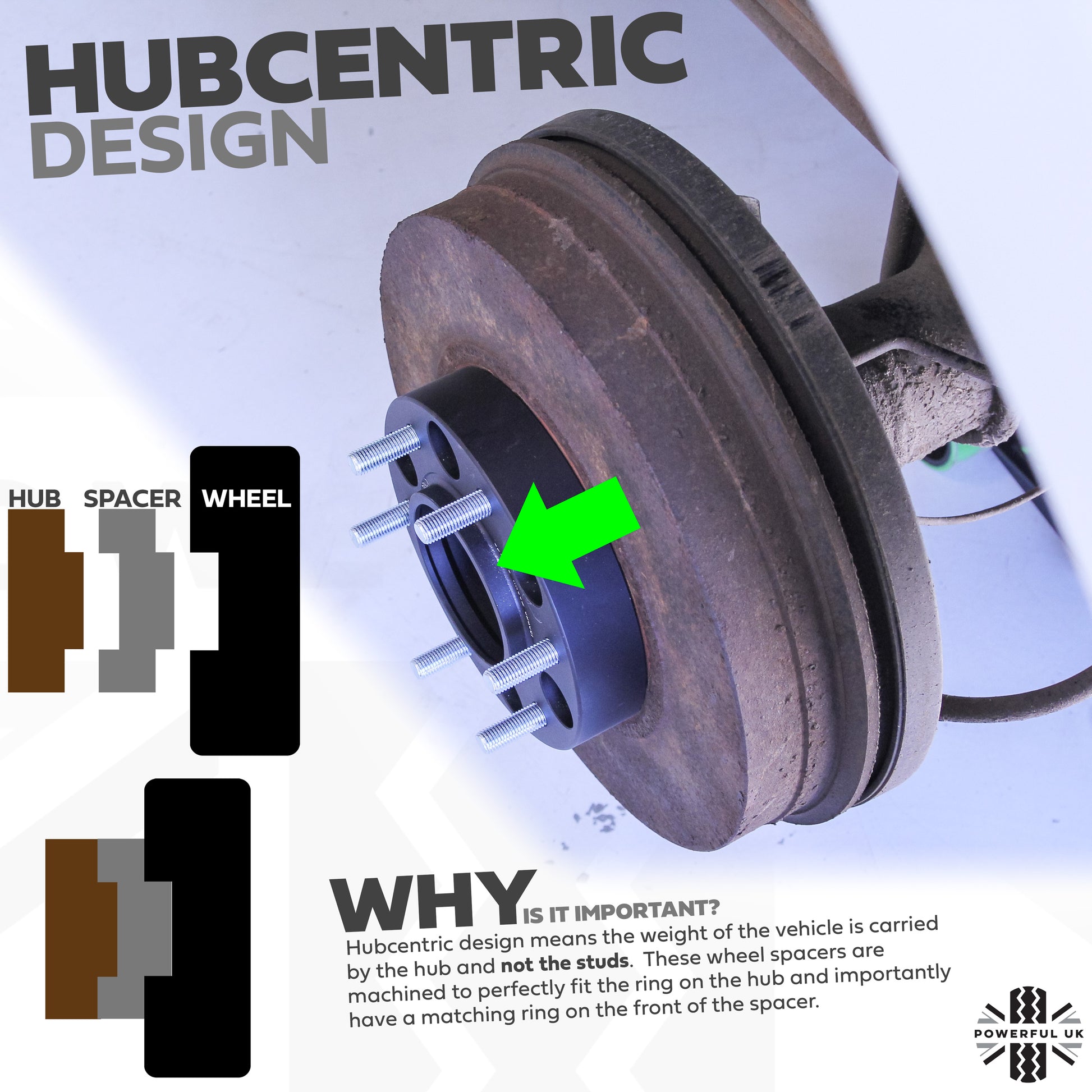 These are hubcentric spacers which retain the strength of the design as the hub carries the weight and not the studs/bolts (the diameter of the centre bore on the wheel spacers is 67.1mm).