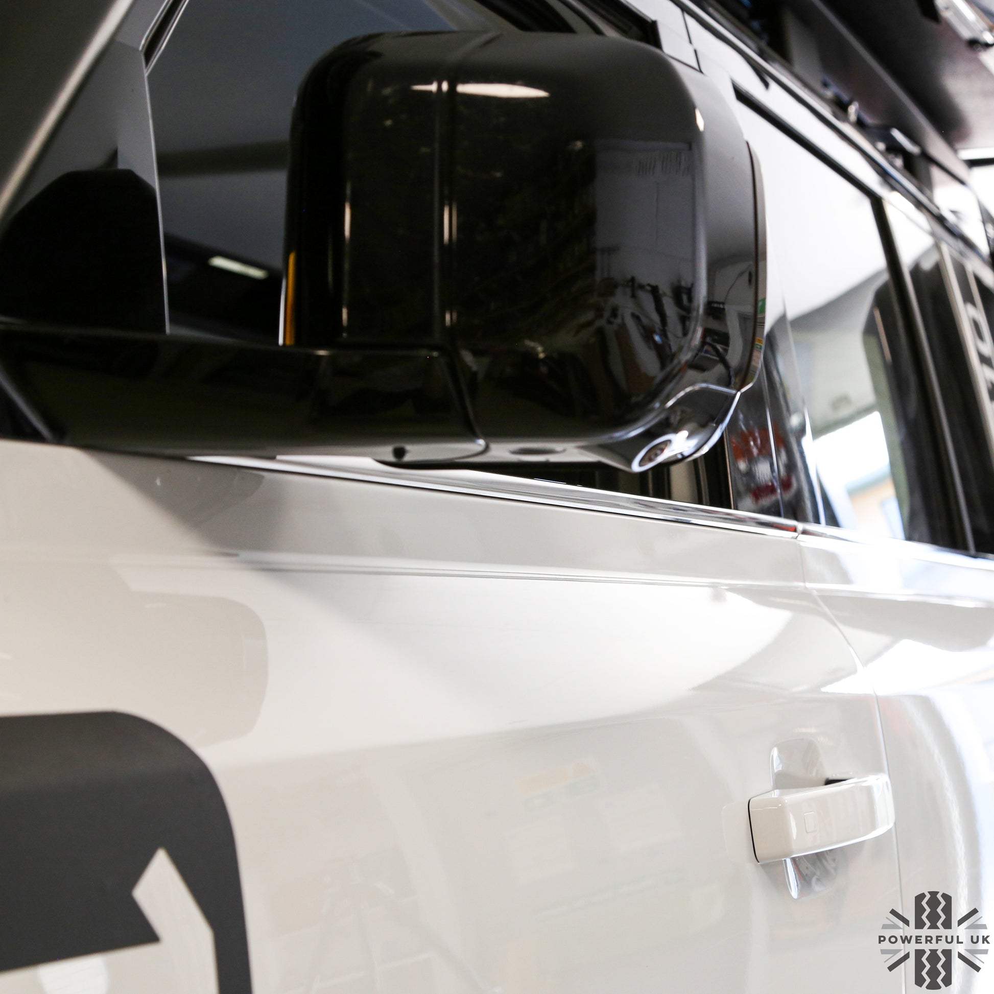 This is a 4pc set of polished stainless steel window rubber cover trims for the Land Rover Defender L663 (110/130).