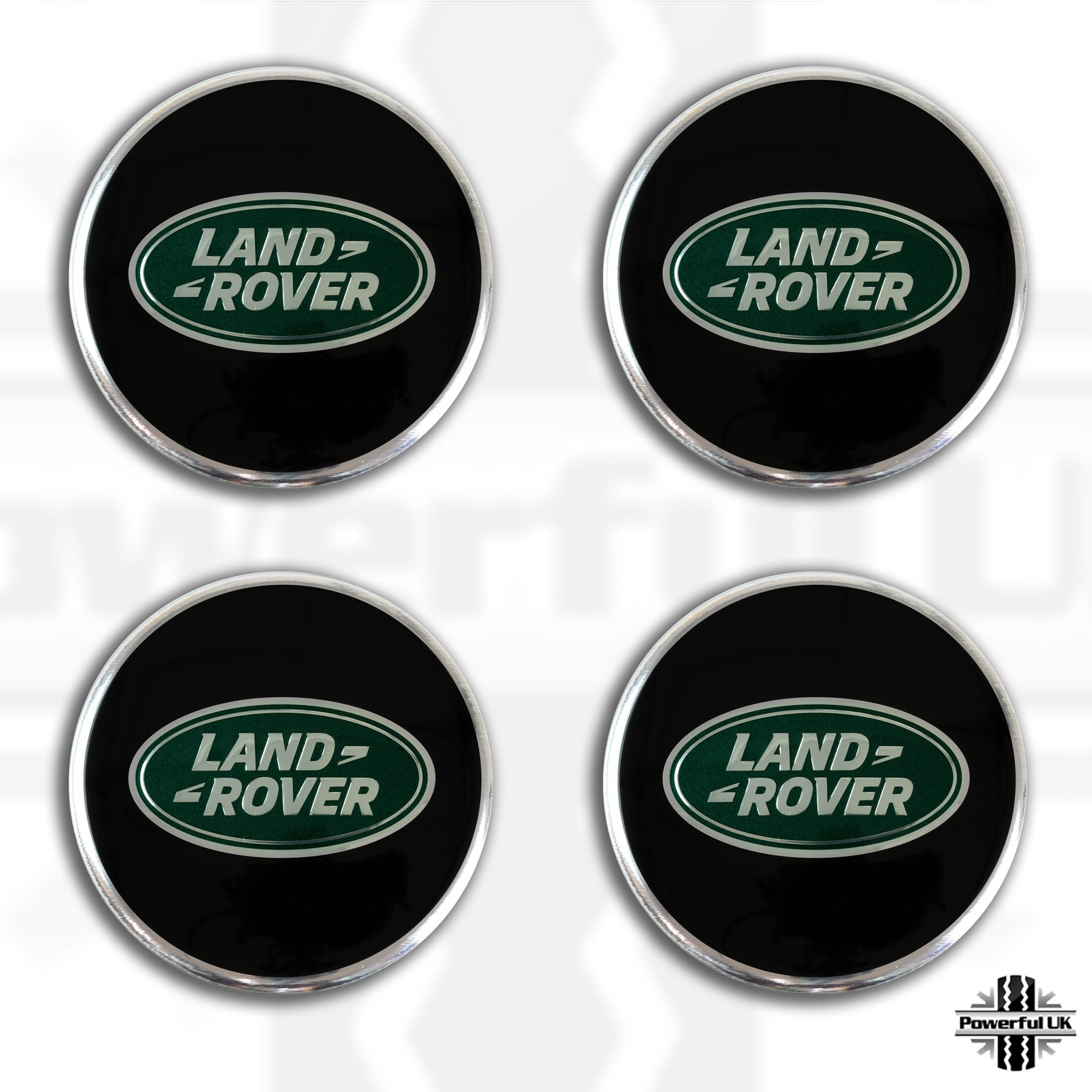 These centre caps have the chrome and metallic green Land Rover logo in the centre, with a black surround, and a chrome outer lip.