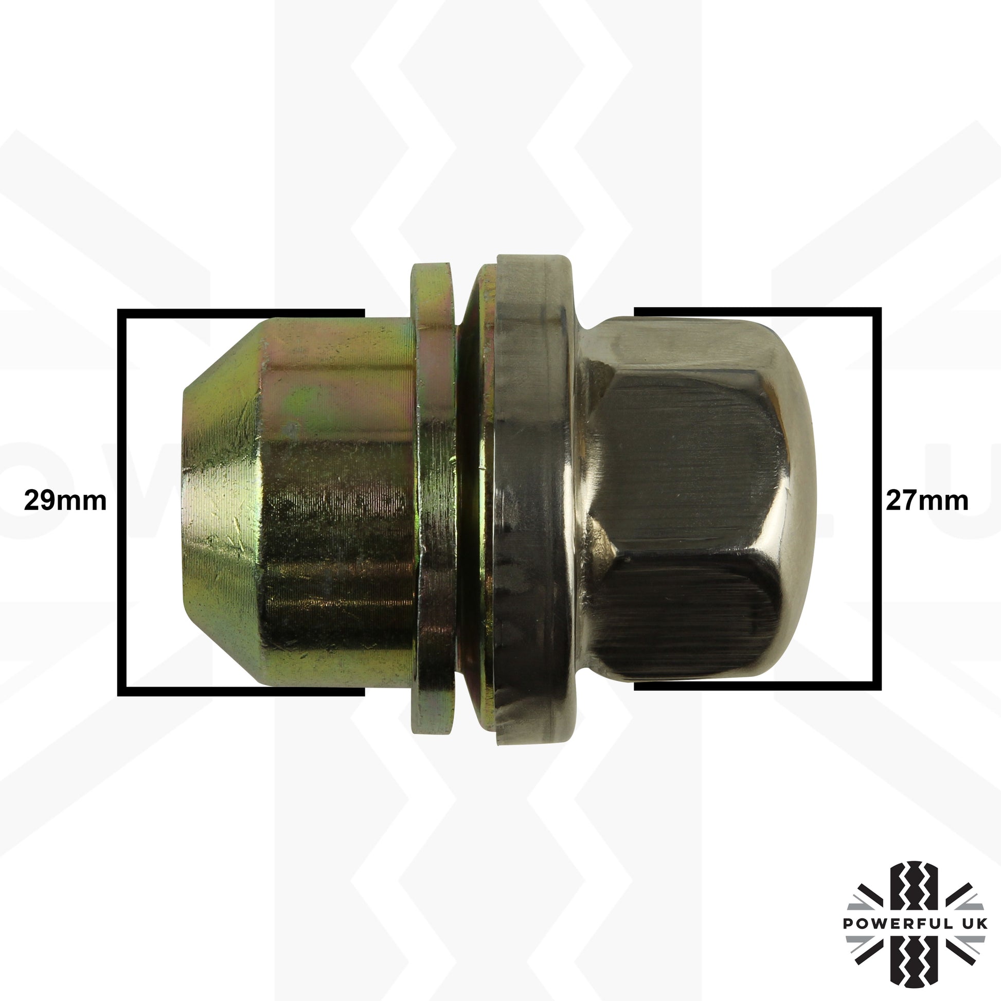 These wheels nuts are made from high strength steel and have a bright stainless steel cap.