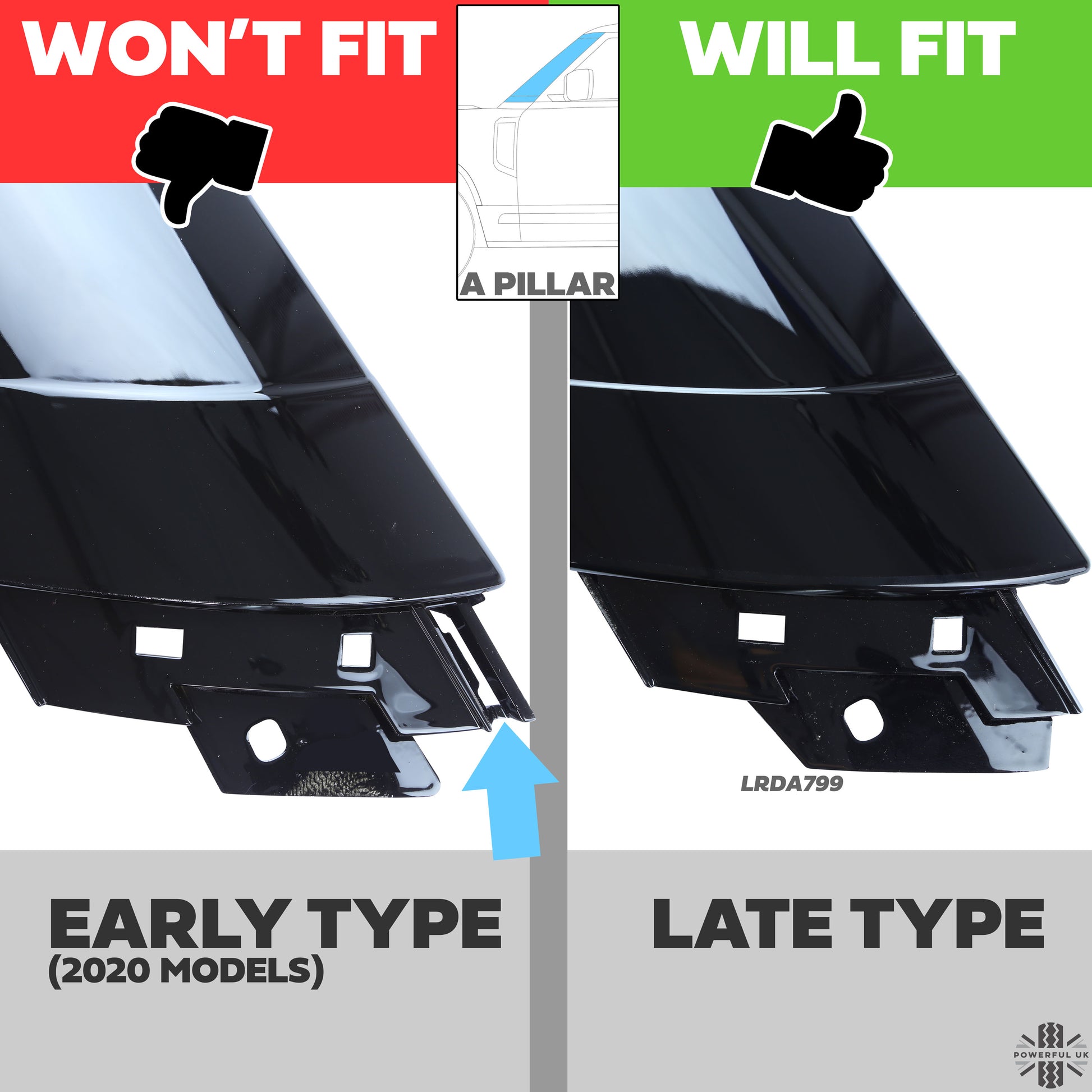 IMPORTANT INFO: The design of the A Pillar finisher and cap changed sometime in 2020 - this is the late type cap and is not compatible with the early type a pillar finisher (see photo).