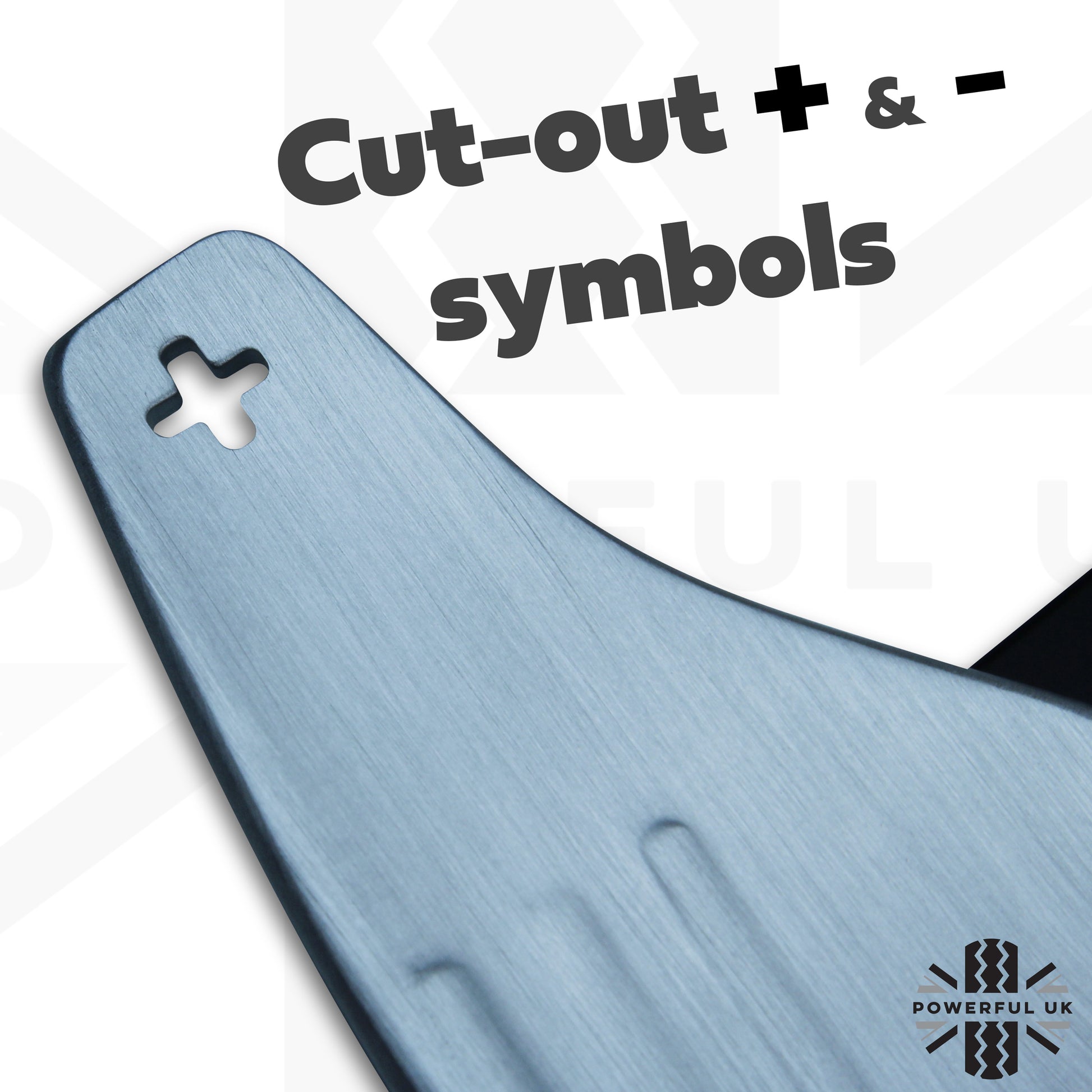 The + and - symbols on each paddle shift are actually cut out of the aluminium and not just printed on.