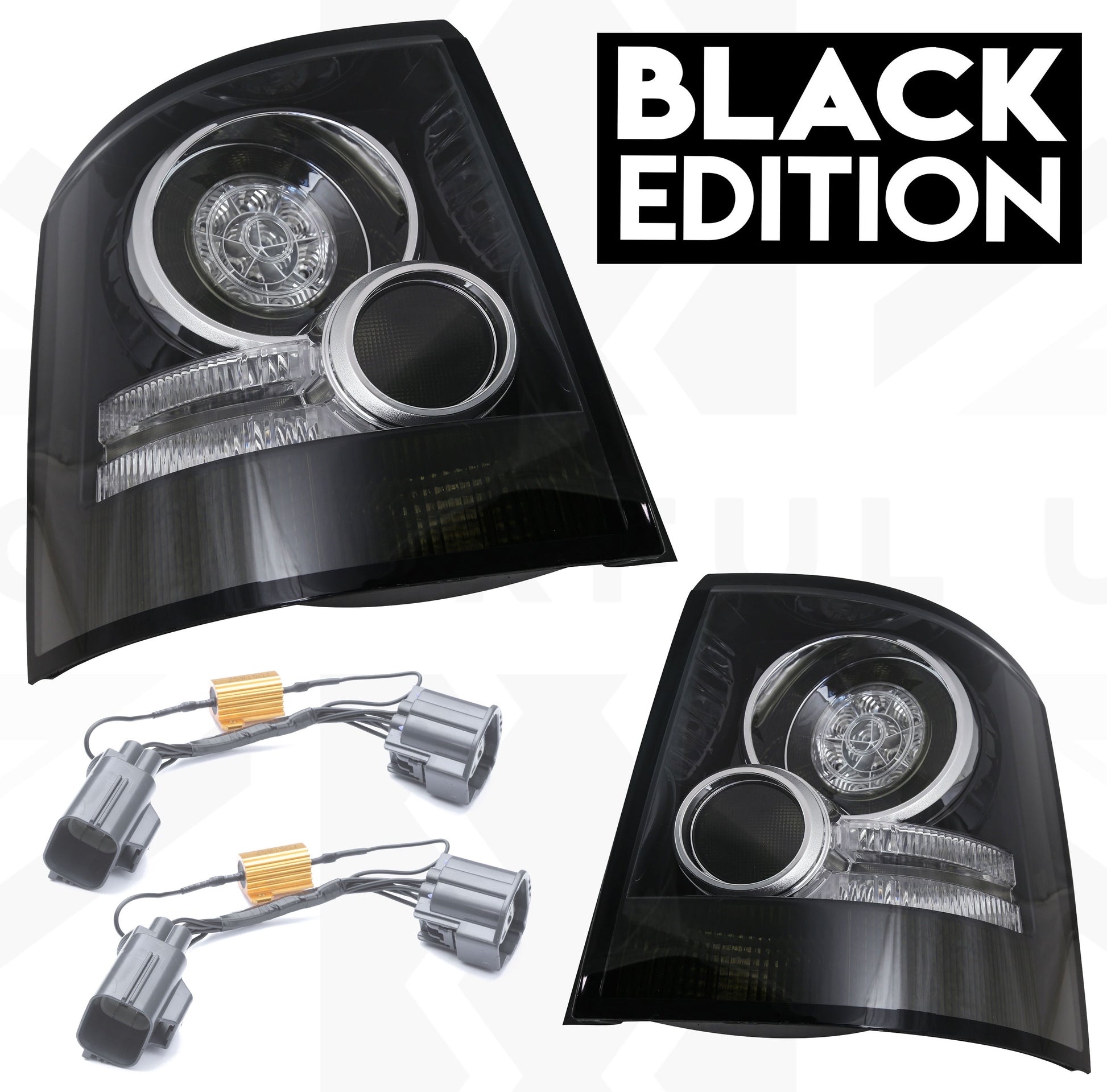 This listing is for a pair of aftermarket Range Rover SPORT 2010 style 'Black Edition' rear light assemblies complete with plug and play resistor looms.