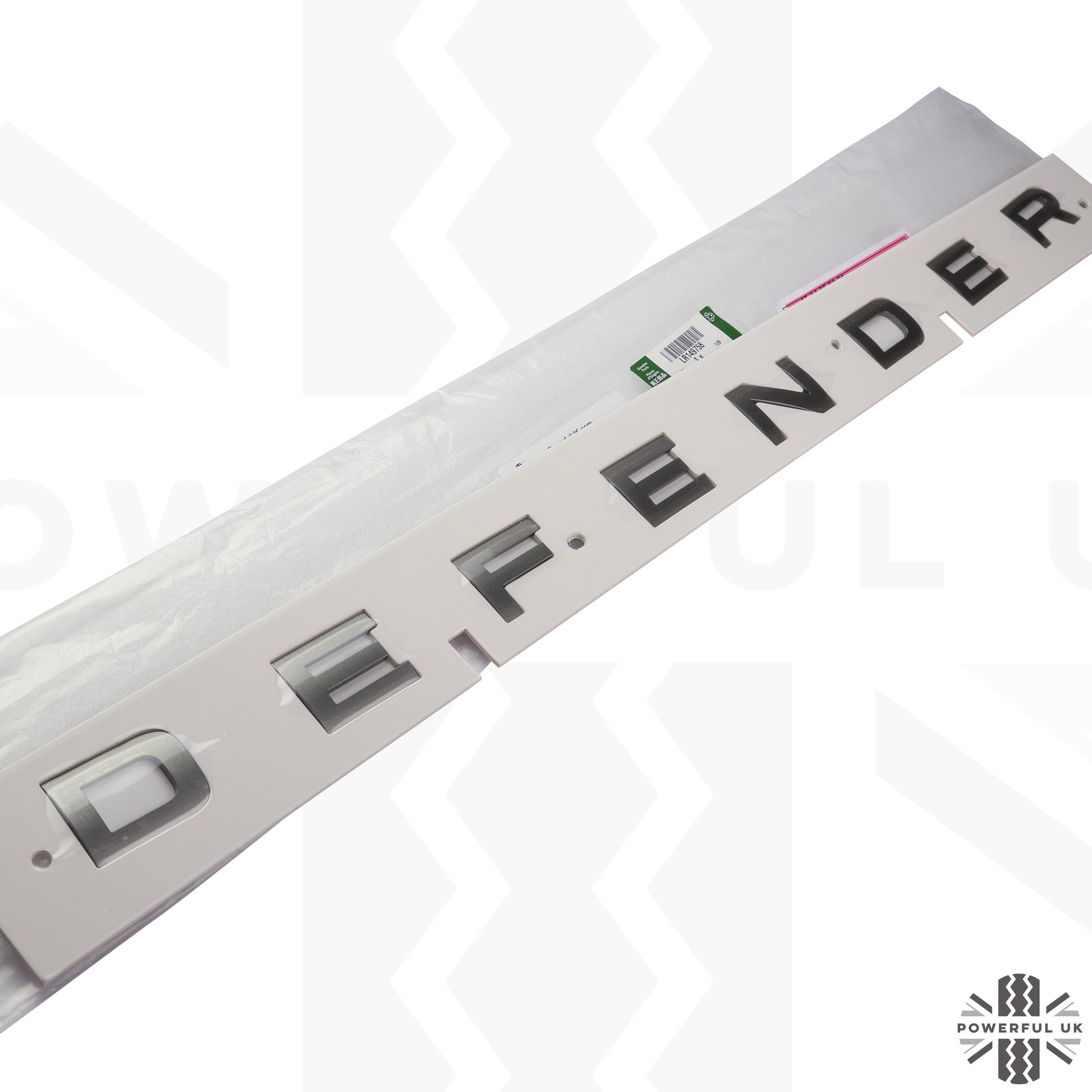 The lettering is a genuine Land Rover item, brand new in retail packaging.