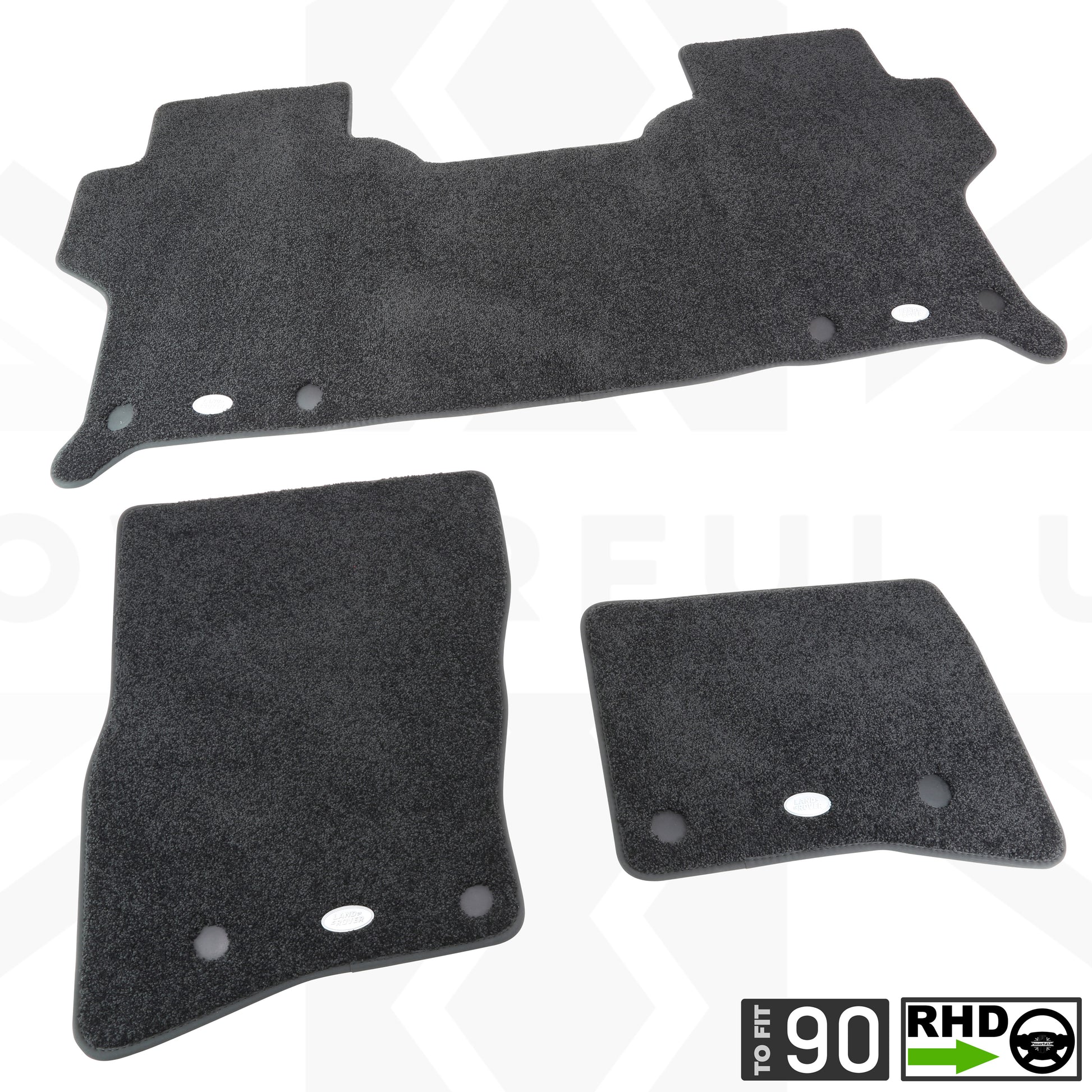 This listing is for a genuine set of Land Rover luxury carpet floor mats for the Land Rover Defender L663 (90 model - 3 door).