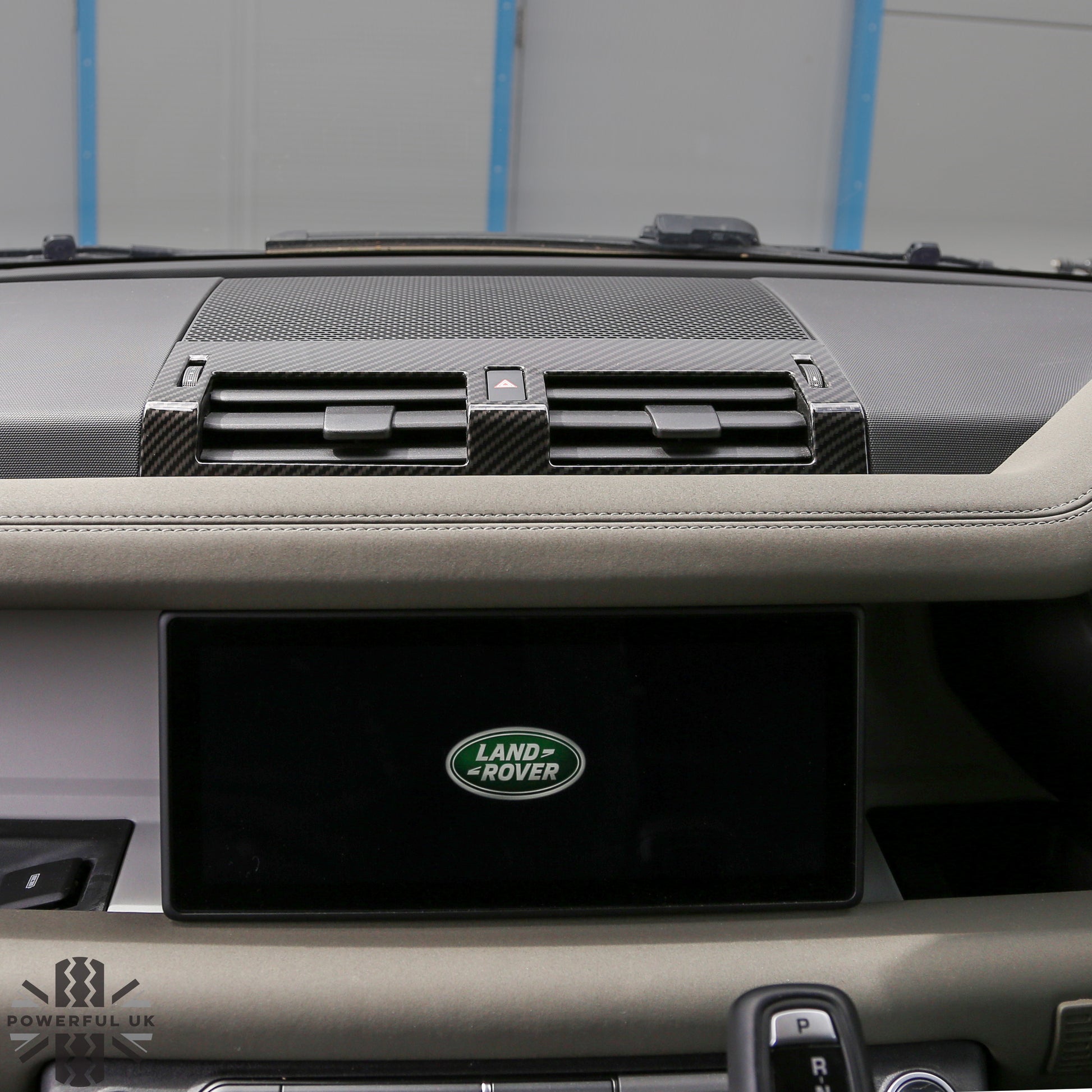 This listing is for a carbon fibre effect centre air vent panel cover for the Defender L663.
