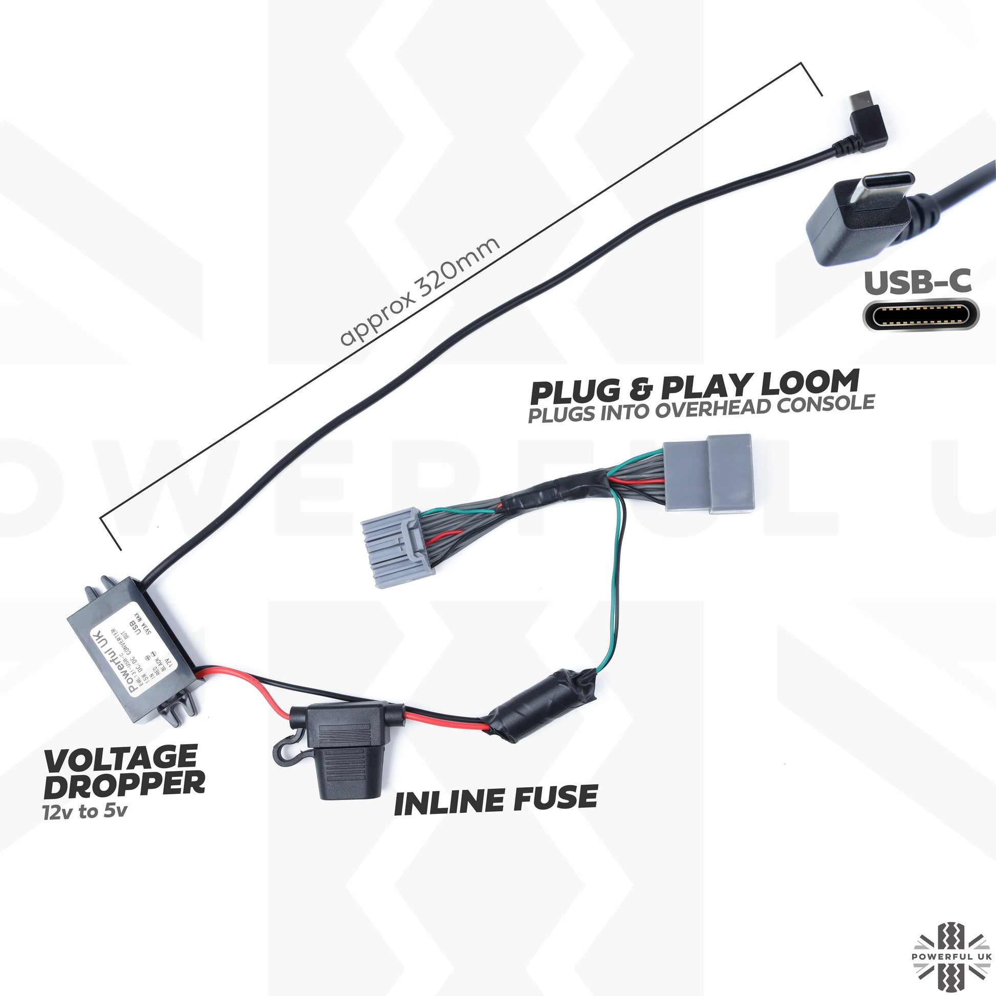 Power Tap-in Loom + USB-C adapter KIT for Overhead Console