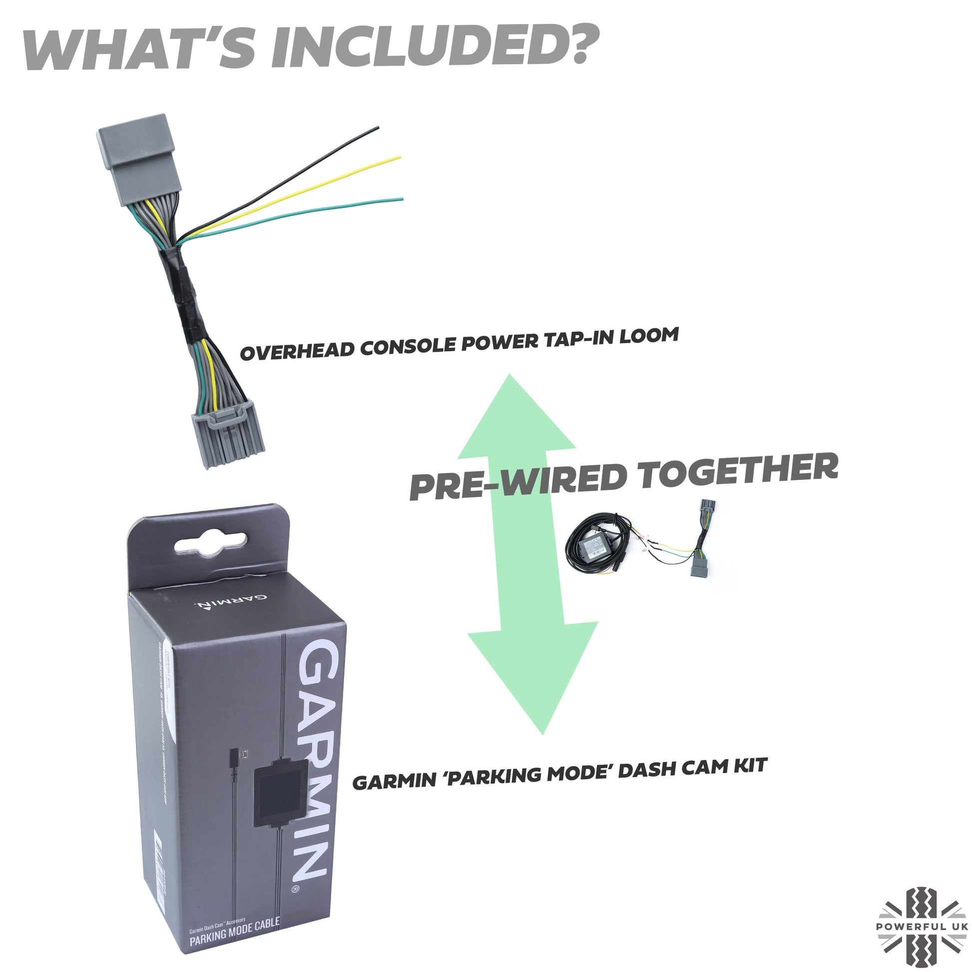 Dash Cam Wiring Kit - Tap-in Loom + Garmin Hardwire Kit for Evoque 1 with EARLY overhead console (2011-14)