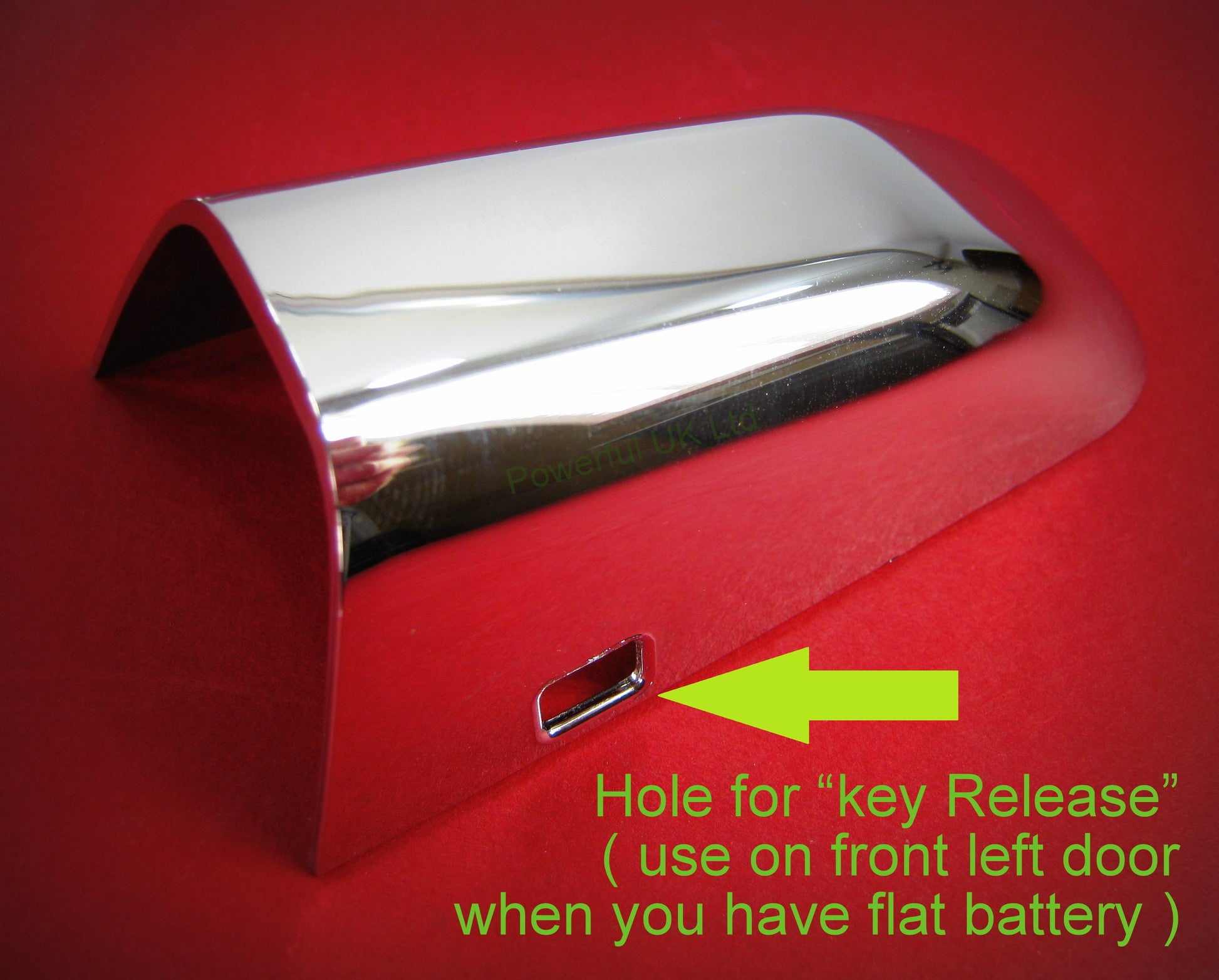 NOTE: If you get a flat battery in your car the small part of the door handle on the left door comes off to reveal a conventional key hole - these covers have the slot in the UK passenger side that allows you to release the cap and access the key. Land Rover, at some point, swapped this key hole to the drivers side (or vice versa) so please check your vehicle to ensure that you have a slot on the (UK - passenger) door. You could still fit these if your key access is drivers side, but you would need to pull off the cover if you ever needed to access the key hole.