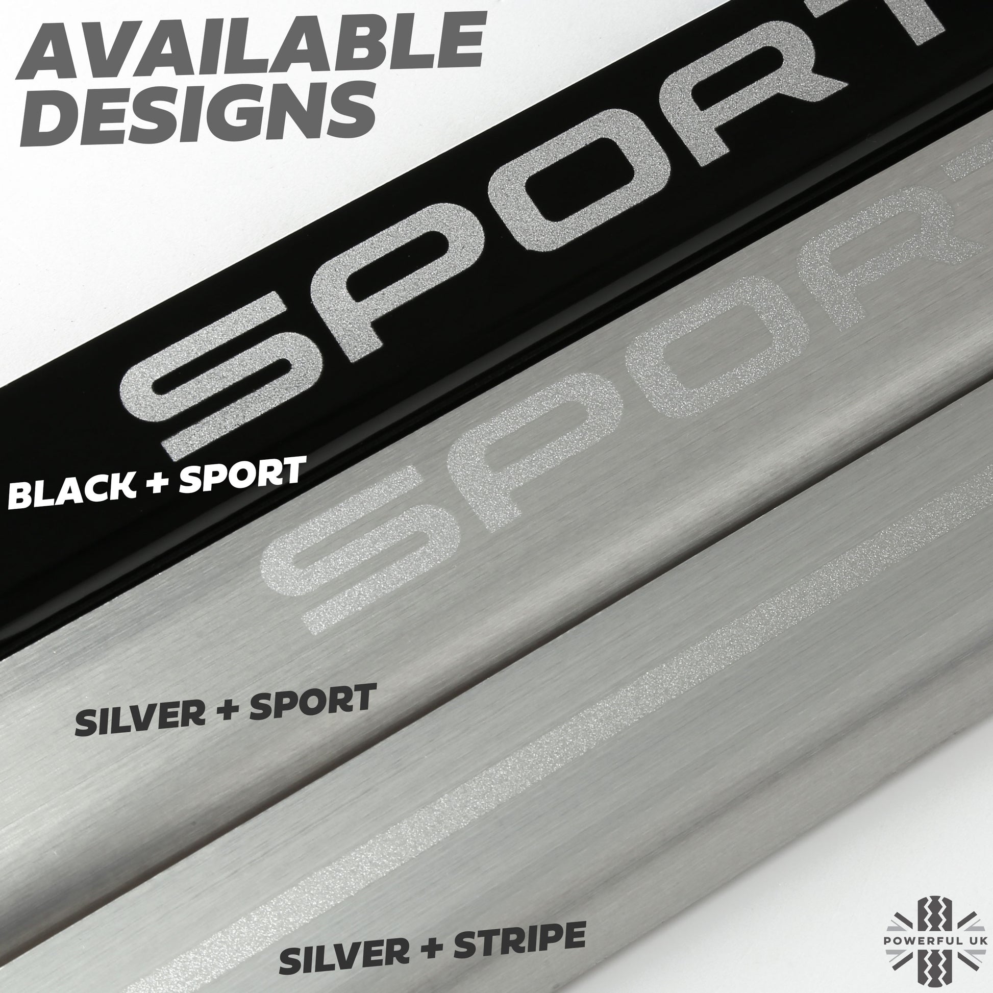 These are made from aluminium with black painted finish and feature a silver painted SPORT logo.