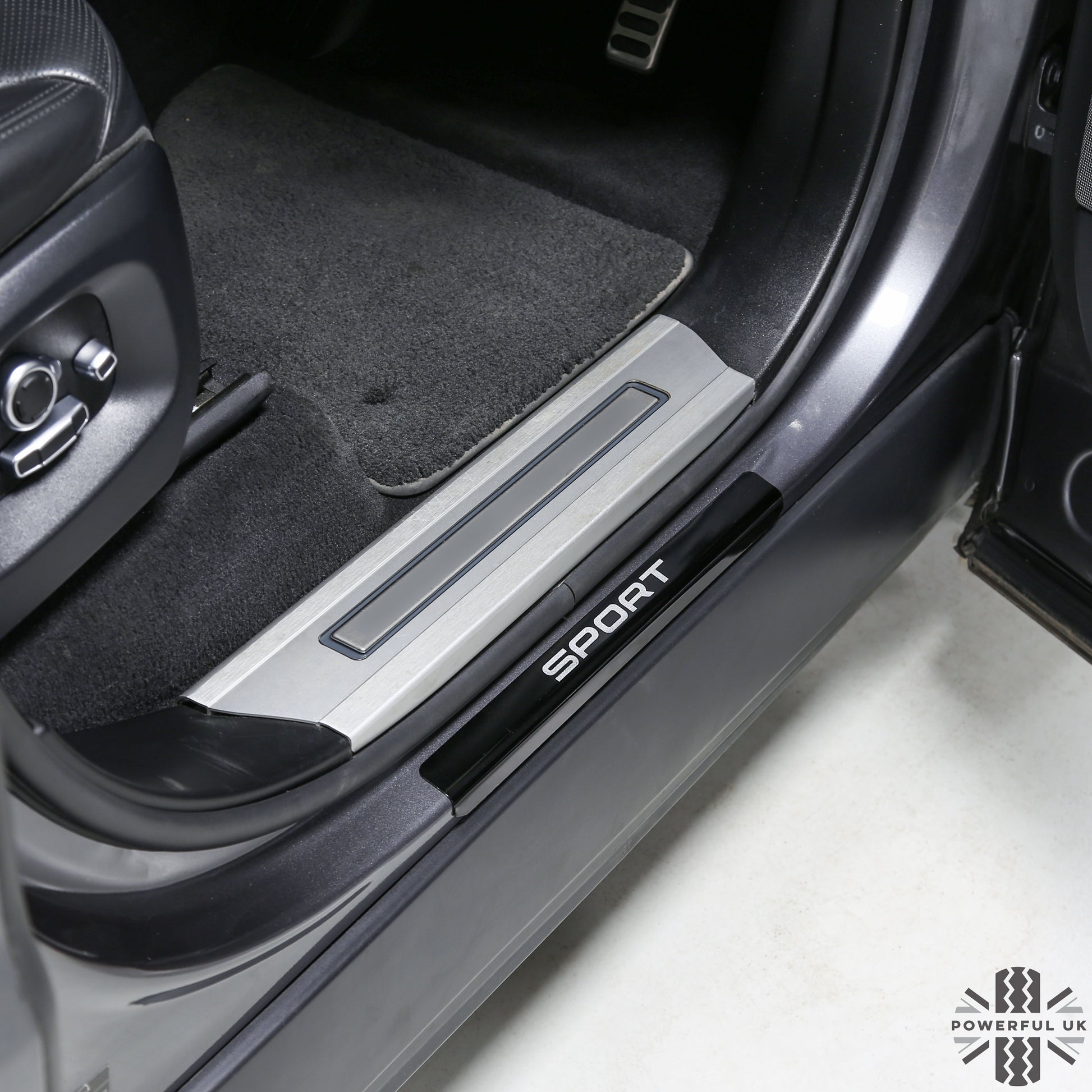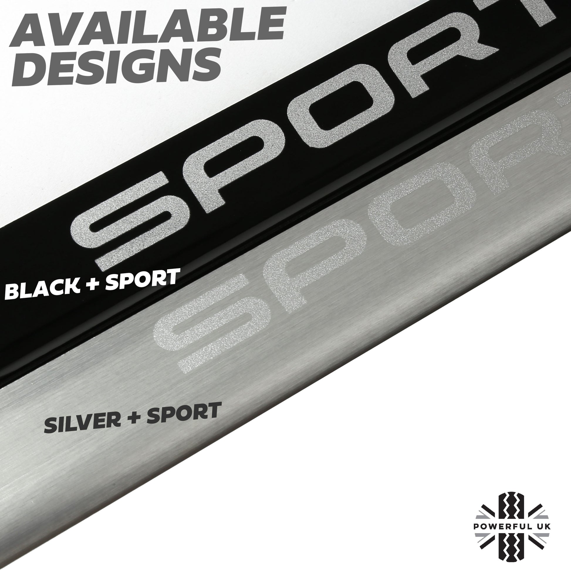 These are made from aluminium with black painted finish and feature a silver painted SPORT logo.