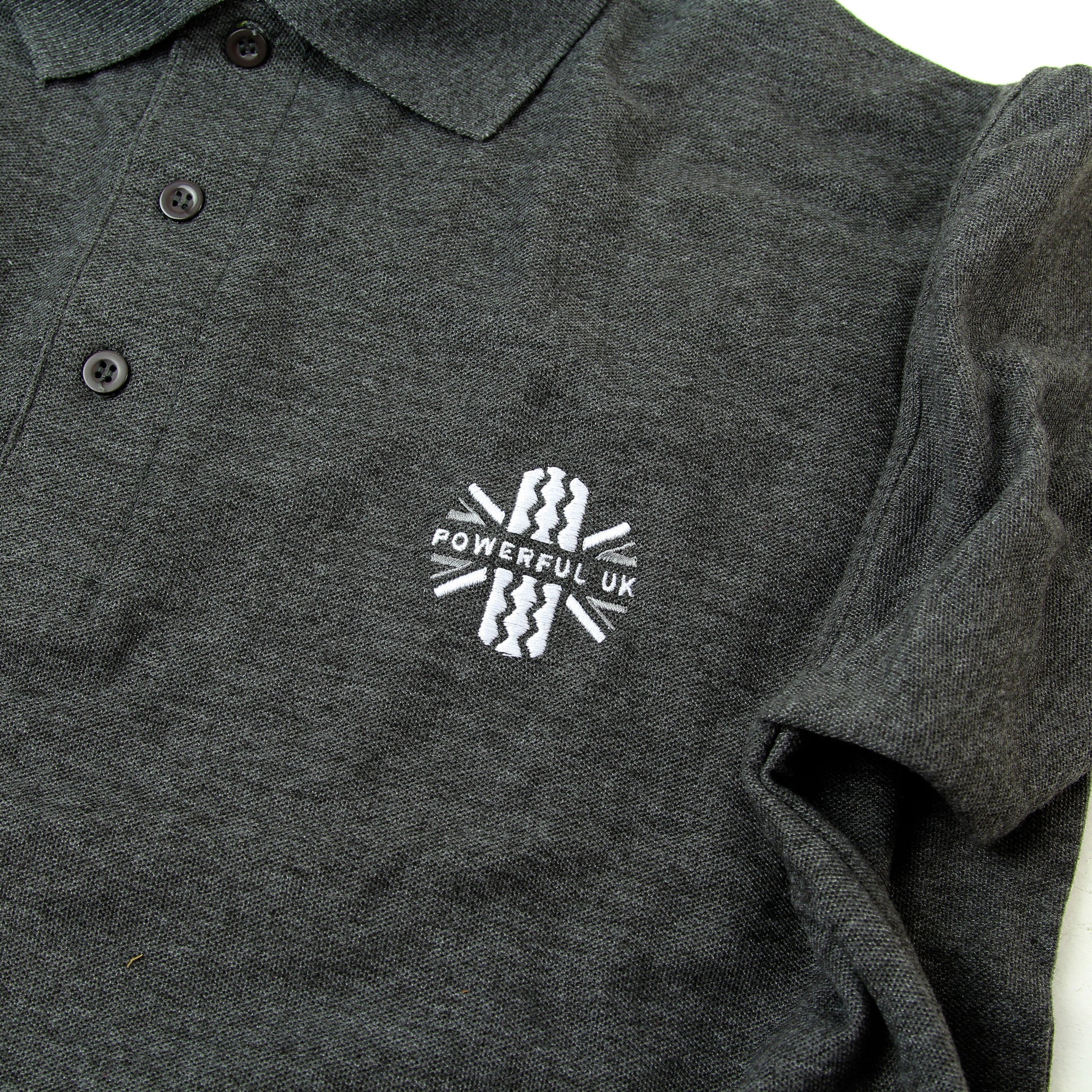 Embroidered Polo Shirt Powerful UK Ltd "Merch" - Charcoal Grey - SMALL