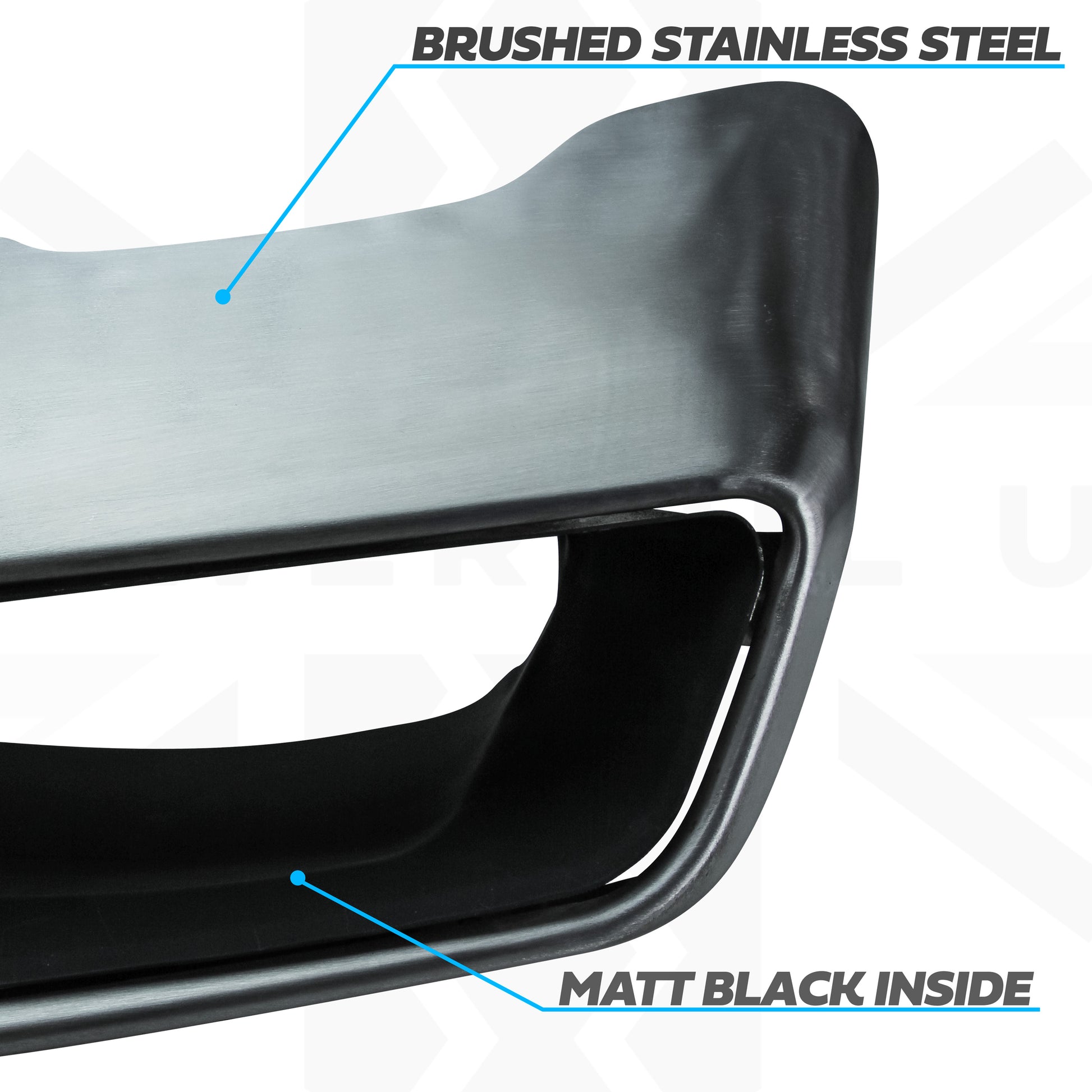 These exhausts are constructed from stainless steel with a brushed finish and a matt black finish inside.