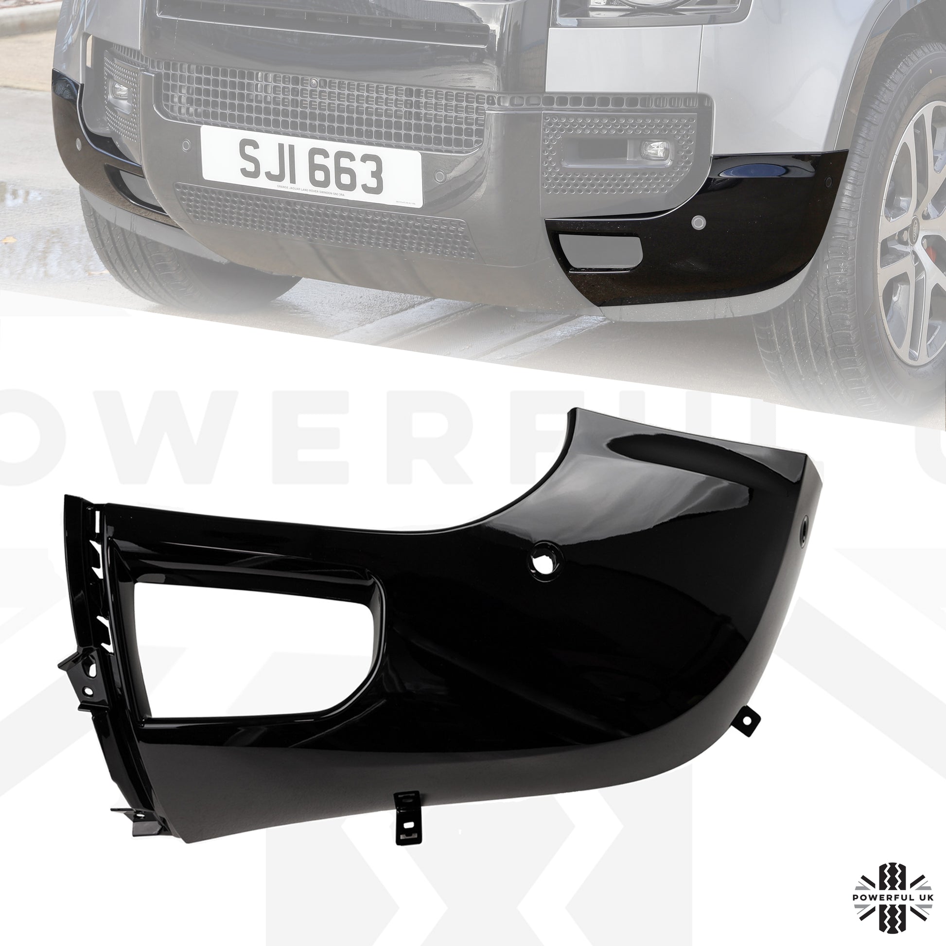 This is a replacement front bumper corner for the Defender L663.