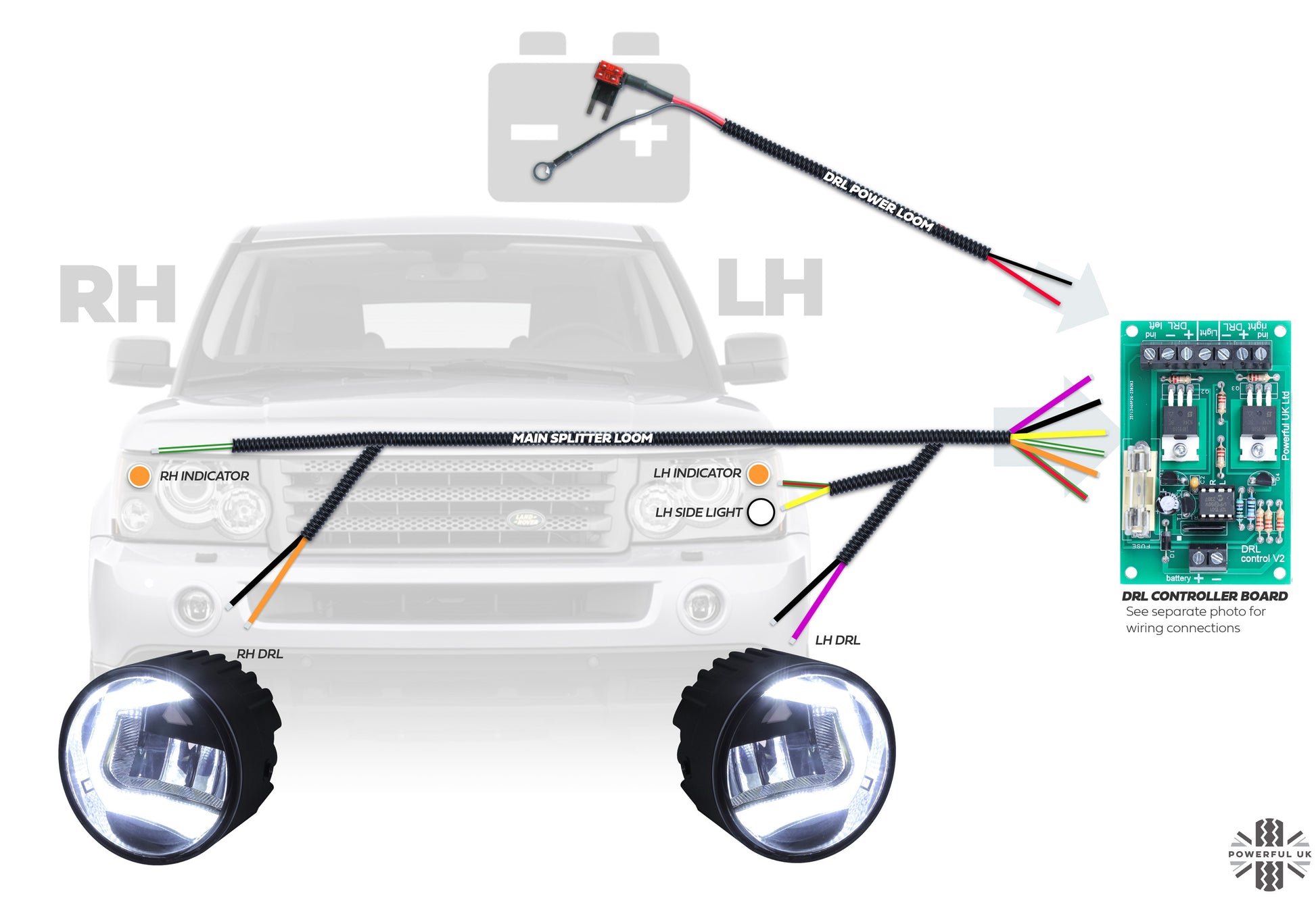 - DRL splitter loom: main loom which links DRL lamps to the controller board