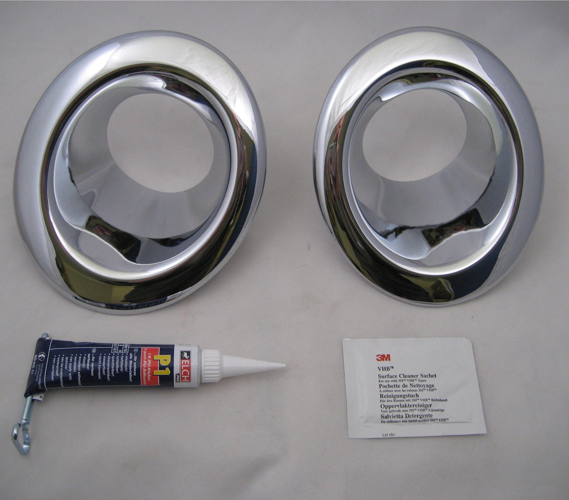 This kit contains a pair of fog light surrounds, silicone adhesive and a Alcohol based pre-clean sachet.