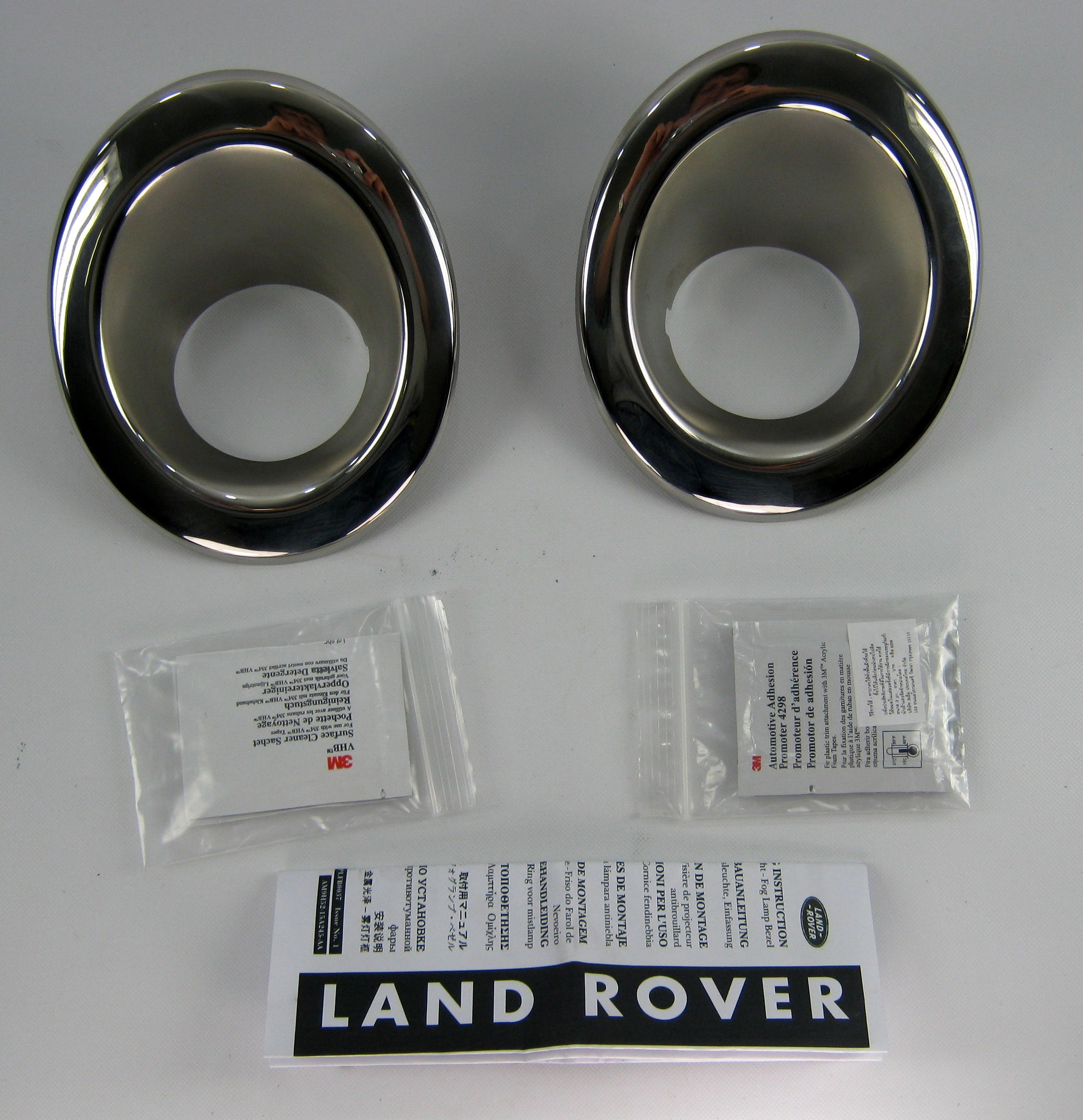 These stainless steel fog light surrounds are genuine Land Rover parts.